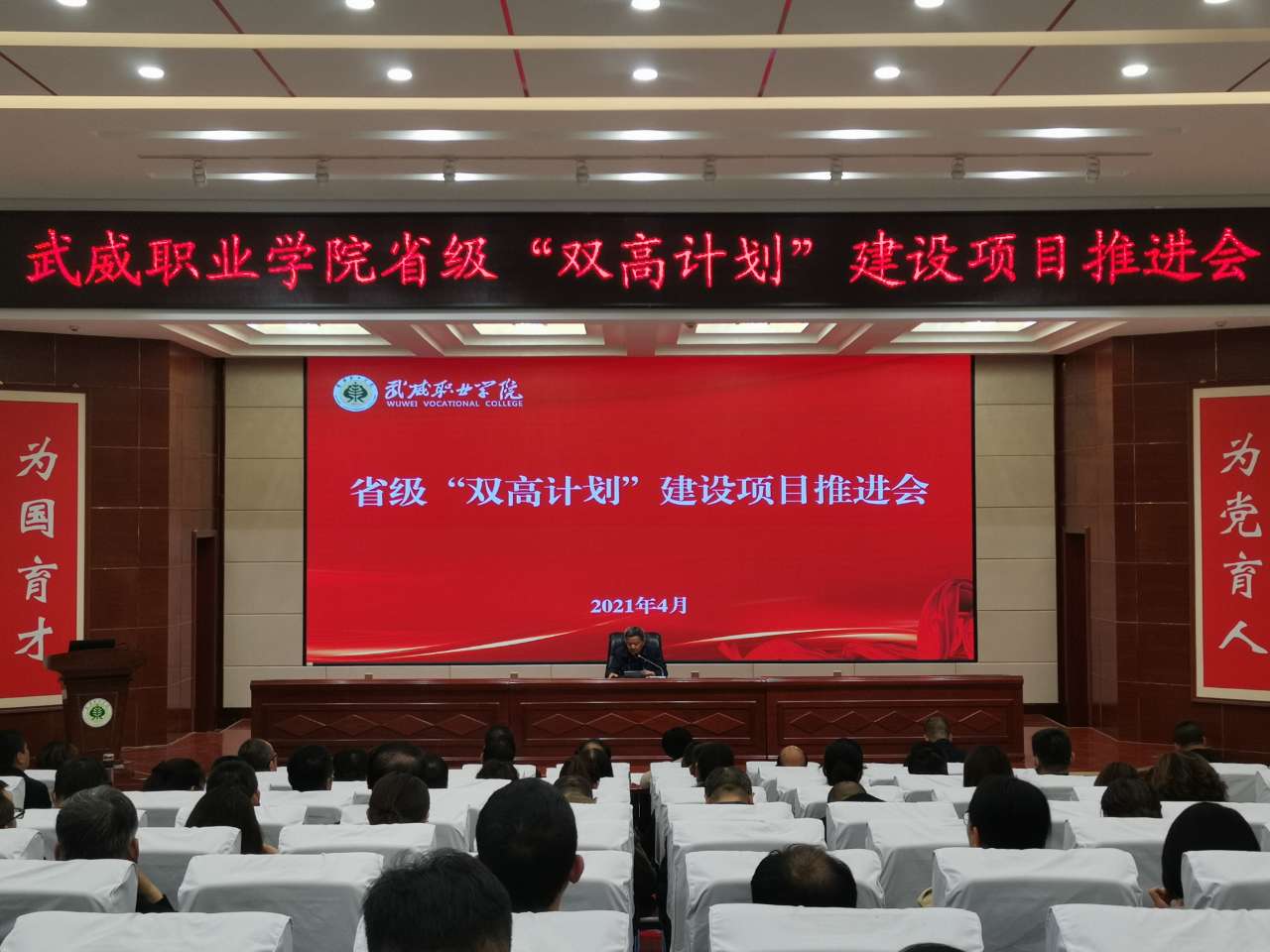 黨委書記、院長趙明在講話中指出,習近平總書記的重要指示和李克強總理的批示,為我們奮力構建高質量職業(yè)教育體系指明了方向。學院成功入選省級“雙高計劃”建設單位,是學院發(fā)展歷程上的又一里程碑,為學院高質量發(fā)展注入了新動能,帶來了新機遇。我們既為前期工作成效感到欣喜,也要認清當前形勢和未來發(fā)展的壓力與緊迫感,抓住這次契機,提升自身硬實力和軟實力。在未來幾年,把“雙高計劃”建設作為學院的中心工作和改革發(fā)展的政治任務。他提出五點工作要求,一是要充分發(fā)揮黨組織的戰(zhàn)斗堡壘作用。以習近平新時代中國特色社會主義思想為指導,加強黨對“雙高計劃”建設項目的全面領導,以一流黨建引領高水平建設,切實把黨建工作與項目建設同部署、同落實、同考評。二是要加強領導,強化責任?!半p高計劃”的建設不能寫在紙上,講在嘴上,而要落實在行動上,所有領導干部要提高擔當意識、服務意識、發(fā)展意識,立足當前,著眼長遠,攻難克堅,為學?!半p高”建設做貢獻。三是要加強融合,提升工作效能。將“雙高計劃”建設與提質培優(yōu)、技能甘肅等重點工作融入日常,同步謀劃、一體推進,確保項目建設有序進行。對標國家高水平院校和高水平專業(yè)群進行高標準謀劃,完善高水平成果培育機制,主動提標、自我加壓,持續(xù)發(fā)力、持續(xù)攻堅,形成更多更好的成果。四是要改革創(chuàng)新,加強績效管理。進一步加強制度建設,持續(xù)創(chuàng)新管理體系、完善管理制度、創(chuàng)新管理辦法,規(guī)范辦事流程,完善績效考核辦法,切實增強績效考核的導向性、方向性、引領性,激發(fā)廣大教職員工參與“雙高計劃”建設的積極性、主動性。五是健全督導機制,加強監(jiān)管。通過開展定期或不定期、形式多樣的督查工作,切實加強管理,推動任務落實。
