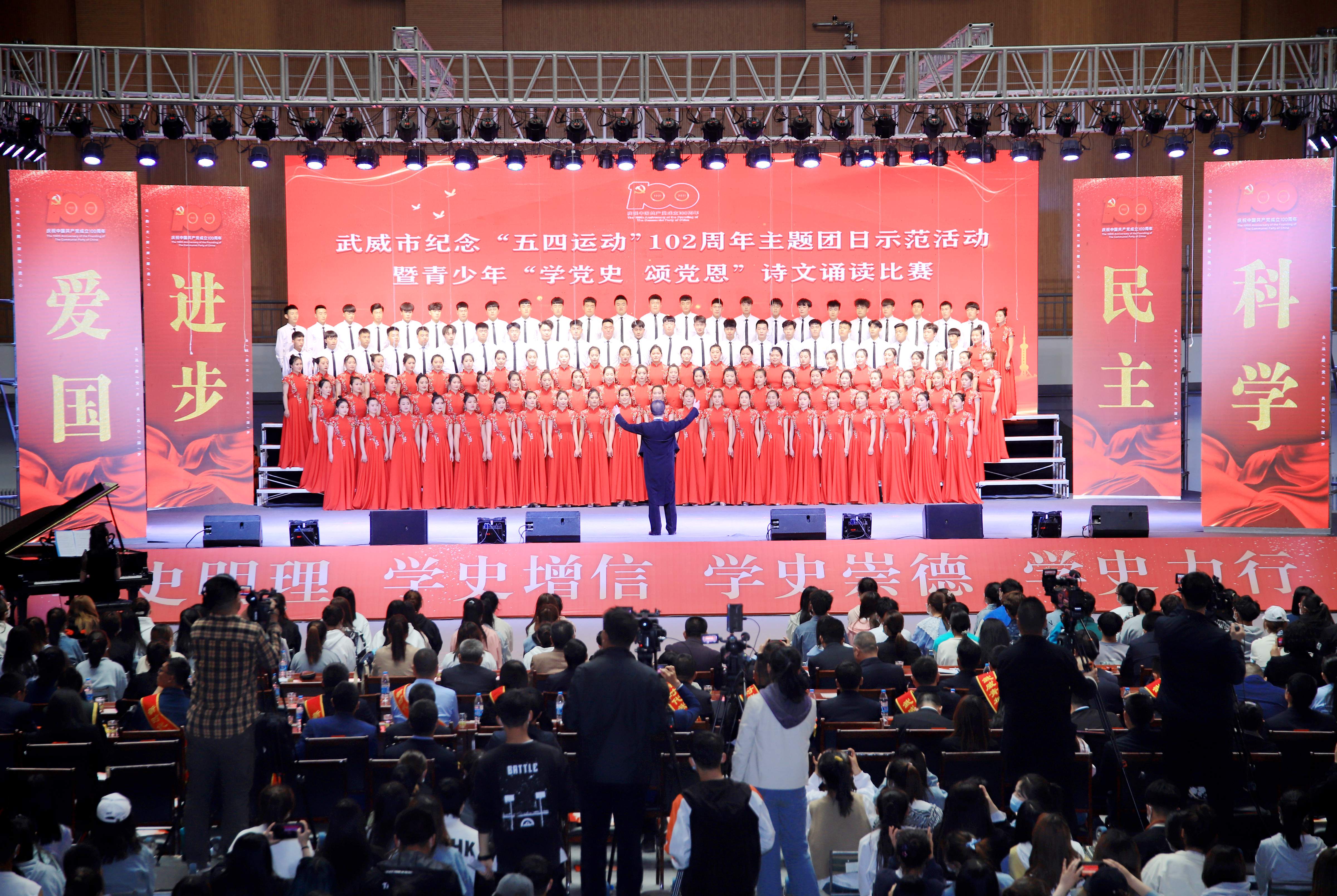 今年是中國共產(chǎn)黨成立100周年,也是五四運(yùn)動102周年。為傳承革命精神,大力弘揚(yáng)愛國、進(jìn)步、民主、科學(xué)的偉大五四精神,以實(shí)際行動迎接黨的百年華誕,深化黨史學(xué)習(xí)教育,牢記青年初心使命,堅(jiān)定不移感黨恩、強(qiáng)信念、跟黨走,4月29日下午,武威市青少年“學(xué)黨史、頌黨恩”詩文誦讀比賽在我院體育館舉行。