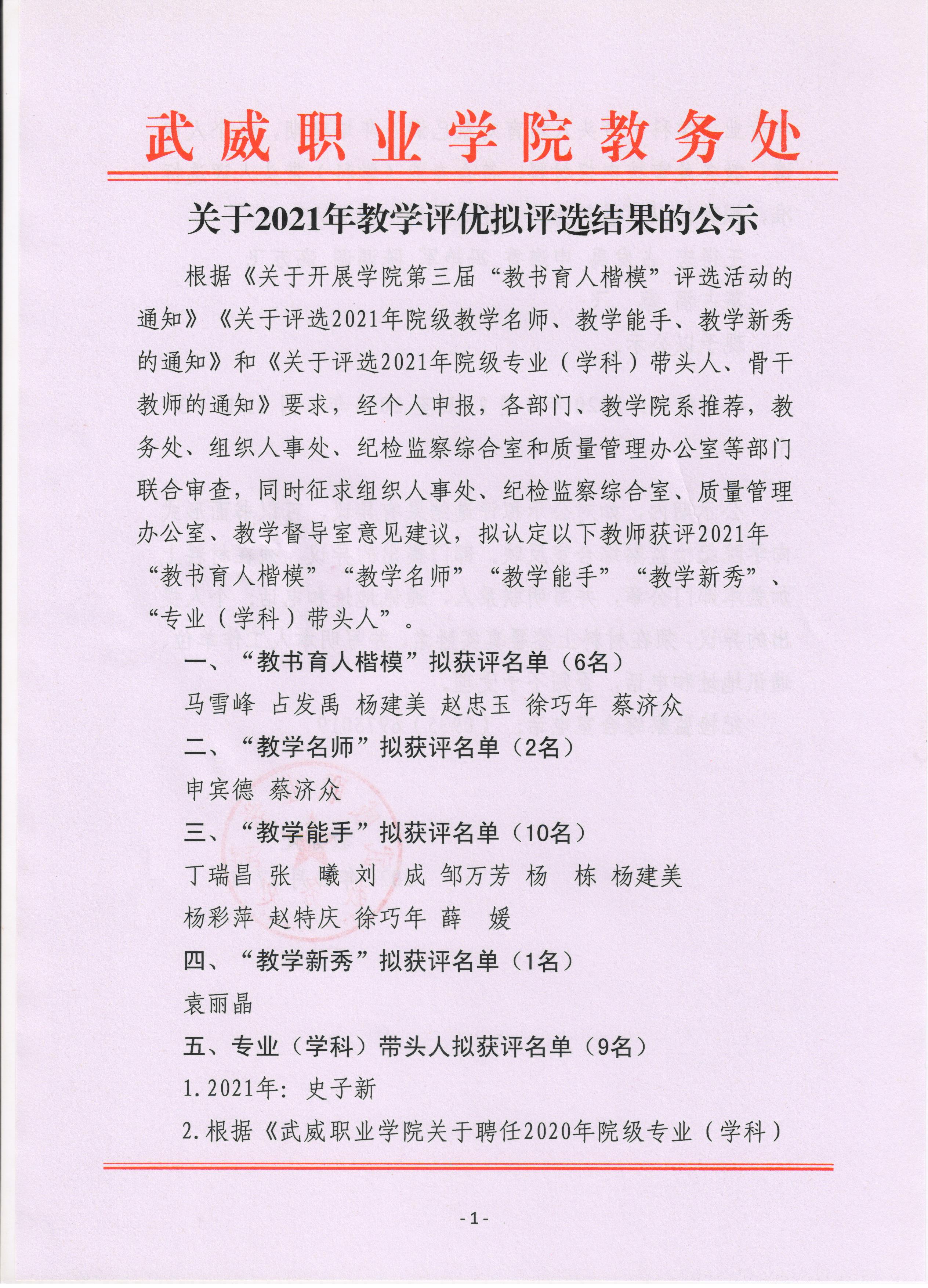 關(guān)于教學(xué)評優(yōu)擬評選結(jié)果的公示