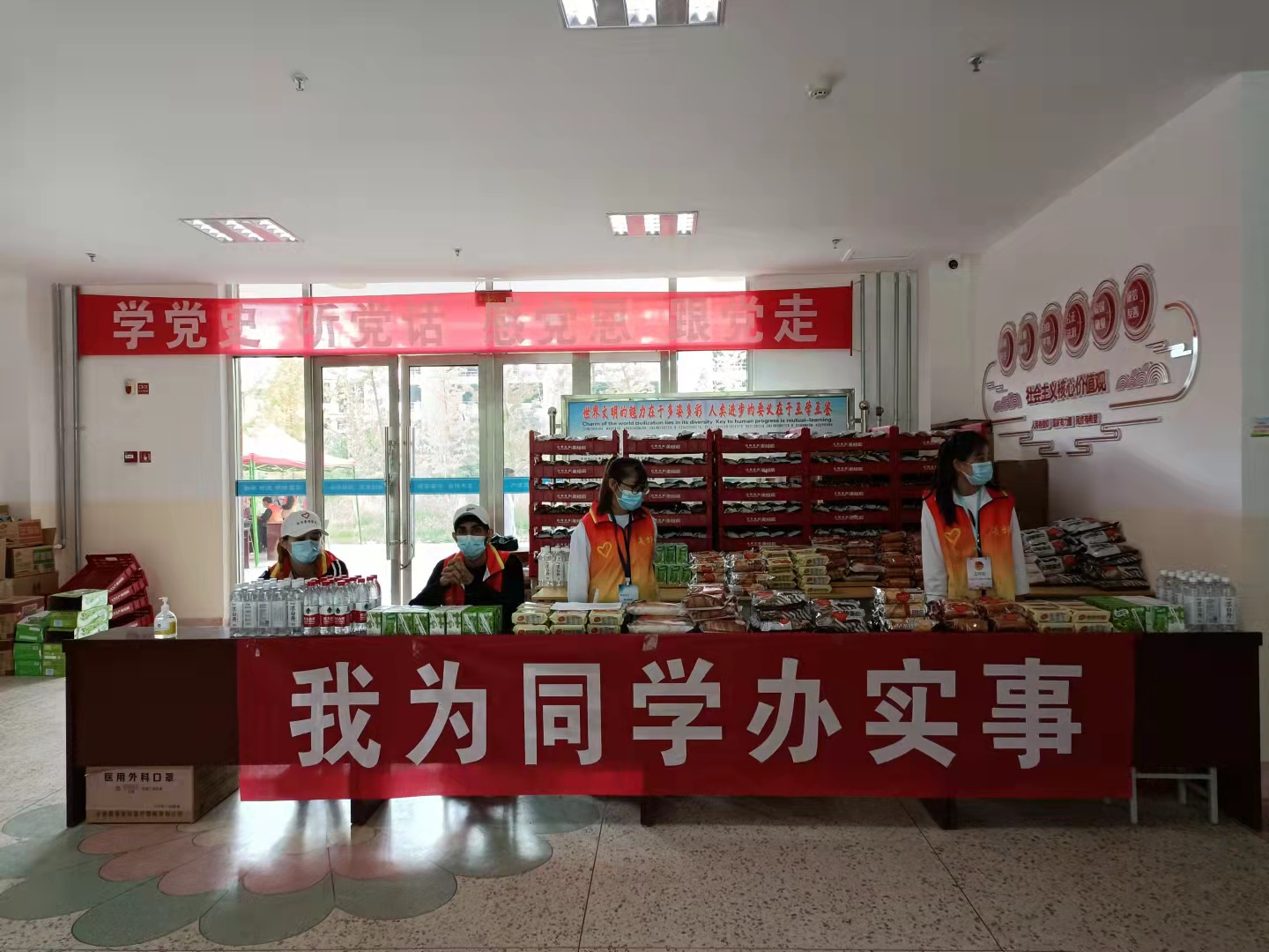 為做好校園閉環(huán)式管理,確保全院師生的健康安全,學(xué)院花費(fèi)20多萬元,委托學(xué)院聯(lián)防聯(lián)控共建單位甘肅省武威腫瘤醫(yī)院為入校學(xué)生在經(jīng)緯樓進(jìn)行核酸檢測,并在等待檢測結(jié)果期間為同學(xué)們發(fā)放牛奶、面包、餅干、純凈水等食物,確保新生安心入校。經(jīng)濟(jì)管理系招募50名師生進(jìn)行服務(wù)保障工作。