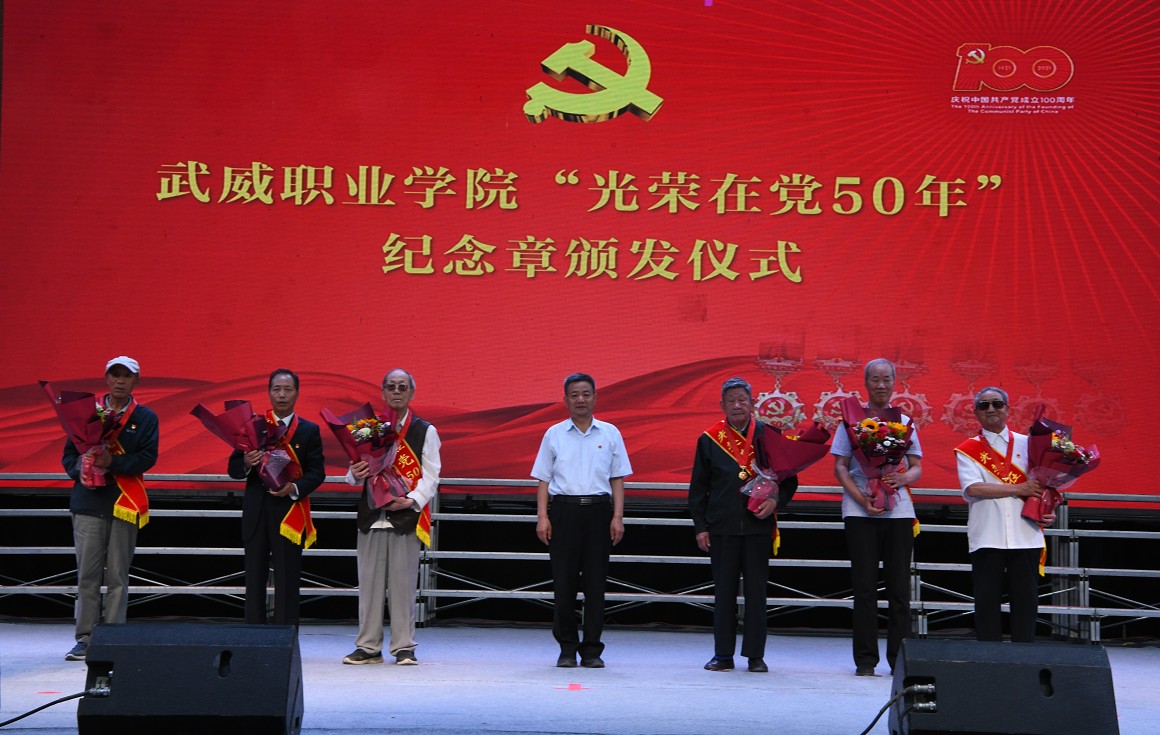 首先舉行了“光榮在黨50年”紀(jì)念章頒發(fā)儀式,學(xué)院黨委委員、副院長(zhǎng)王永緒副教授宣讀《武威職業(yè)學(xué)院獲得“光榮在黨50年”紀(jì)念章黨員名單,學(xué)院黨委書記、院長(zhǎng)趙明教授向獲得紀(jì)念章的6名老黨員代表頒發(fā)紀(jì)念章。老黨員在不同歷史階段,為黨和國(guó)家教育事業(yè)作出了突出貢獻(xiàn),為學(xué)院高質(zhì)量發(fā)展打下了堅(jiān)實(shí)根基。每一位老黨員都是學(xué)院奮斗史上的一個(gè)縮影,我們要永遠(yuǎn)銘記他們的卓越貢獻(xiàn),凝聚對(duì)他們的感激之情!