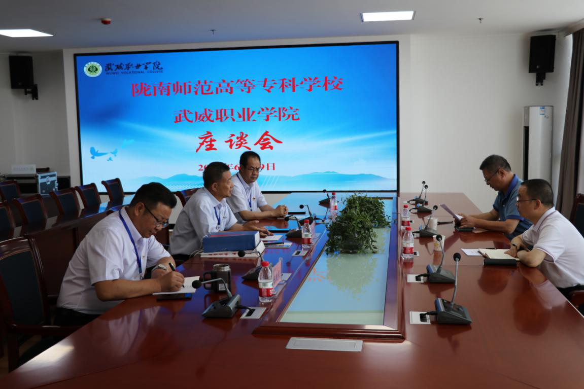 座談會上,趙明向余學軍一行詳細介紹了學院建設發(fā)展歷程、專業(yè)建設、師資隊伍建設、招生就業(yè)、科研服務、校企合作、與中國科學院合作辦學——中科低碳新能源技術(shù)學院建設和“雙高計劃”院校建設等情況。余學軍介紹了隴南示范高等??茖W校近年來發(fā)展與建設的基本情況,并就職業(yè)院校發(fā)展及管理經(jīng)驗進行了交流。