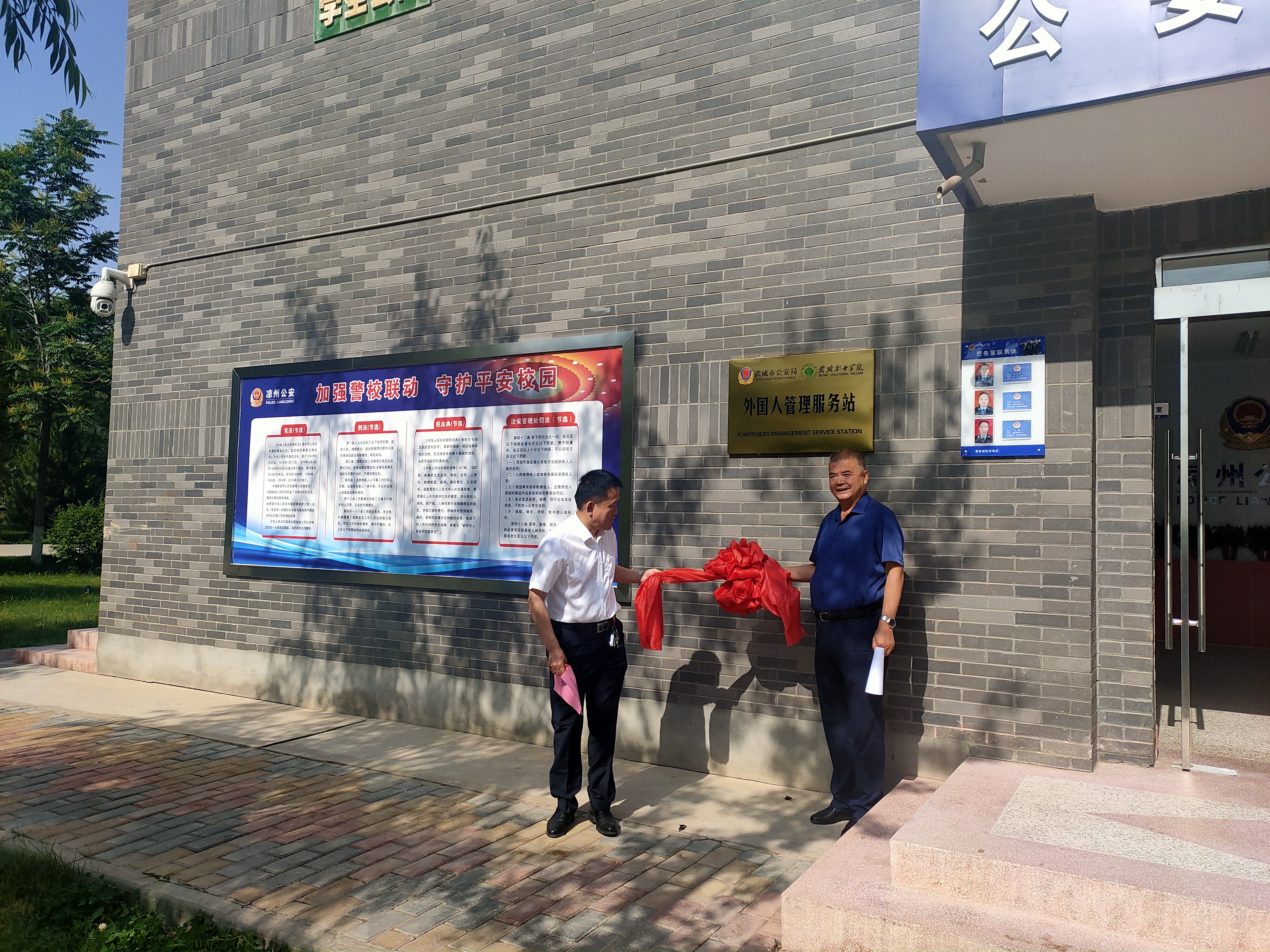 王守云指出,近年來國家鼓勵職業(yè)院校與“一帶一路”沿線國家在教育等方面的合作與交流,學院加入了“高水平高等職業(yè)學校和高水平專業(yè)群建設計劃”,為建成“當?shù)仉x不開,業(yè)內都認同,國際可交流”的高水平高職院校,學院必將進一步加強與“一帶一路”沿線國家的合作與交流。學院高度重視外教及留學生的管理工作,始終將開放辦學與嚴格管理相統(tǒng)一,把加強留學生服務管理工作作為黨史學習教育“我為師生辦實事”的重點任務,積極推進建立外國人管理服務站建設。武威市、區(qū)公安局為了貫徹落實社會治安綜合治理方針,進一步加強公安機關與高等院校的警民院校合作共建工作,推動治安防控體系建設暨“社區(qū)警務”、“外管進校園”工程的落地生根,與武威職業(yè)學院共同建立了外國人管理服務站,學院將積極配合并全力支持服務站運行,為服務站各項工作開展提供有力保障,推動學院平安和諧校園的建設再上新臺階。