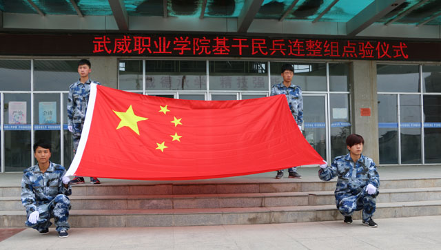 2016年5月5日下午5時,伴隨嘹亮的中華人民共和國國歌聲的響起,面對鮮艷的中華人民共和國國旗,武威職業(yè)學(xué)院基干民兵連整組點驗儀式在學(xué)院尚德樓北廣場隆重舉行。