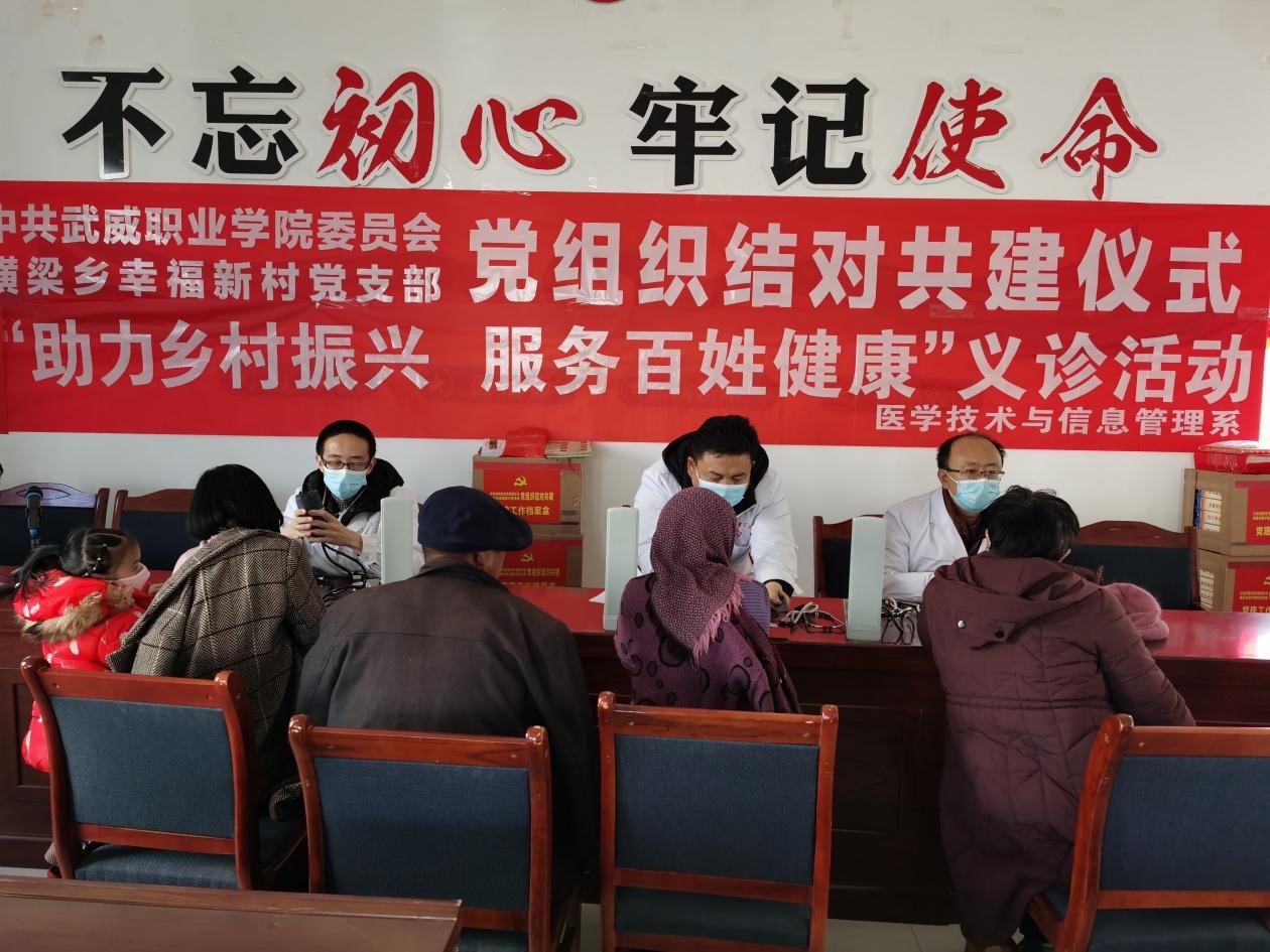 為深入學(xué)習(xí)宣傳貫徹黨的十九屆六中全會精神及武威市第五次黨代會精神,緊緊圍繞鄉(xiāng)村振興戰(zhàn)略全力落實健康扶貧等惠民政策,12月10日,醫(yī)學(xué)技術(shù)與信息管理系黨總支組織黨員和教師到古浪縣橫梁鄉(xiāng)幸福新村、康寧新村開展“助力鄉(xiāng)村振興,服務(wù)百姓健康”義診活動。
