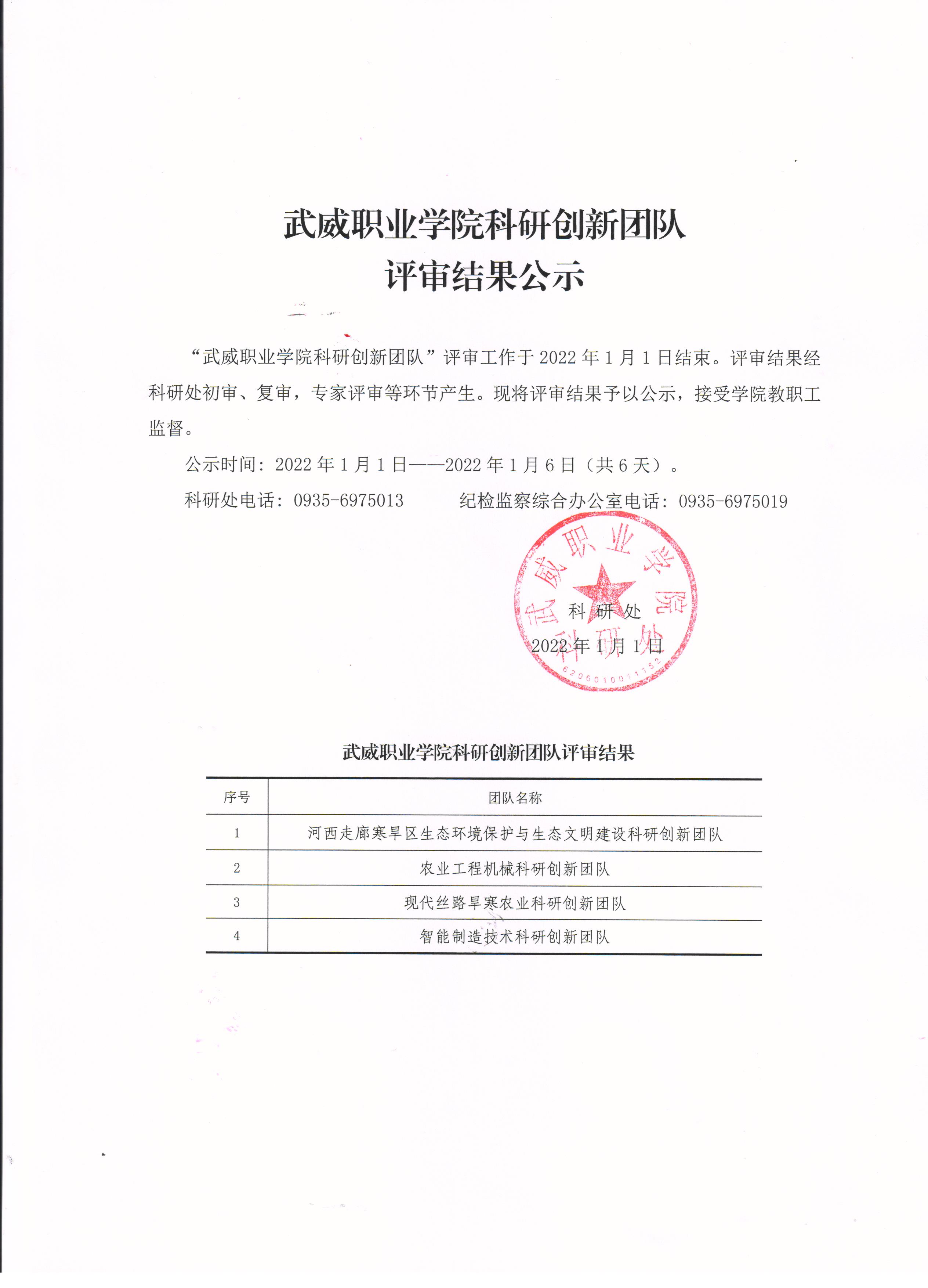 武威職業(yè)學(xué)院科研創(chuàng)新團(tuán)隊(duì)評審結(jié)果公示