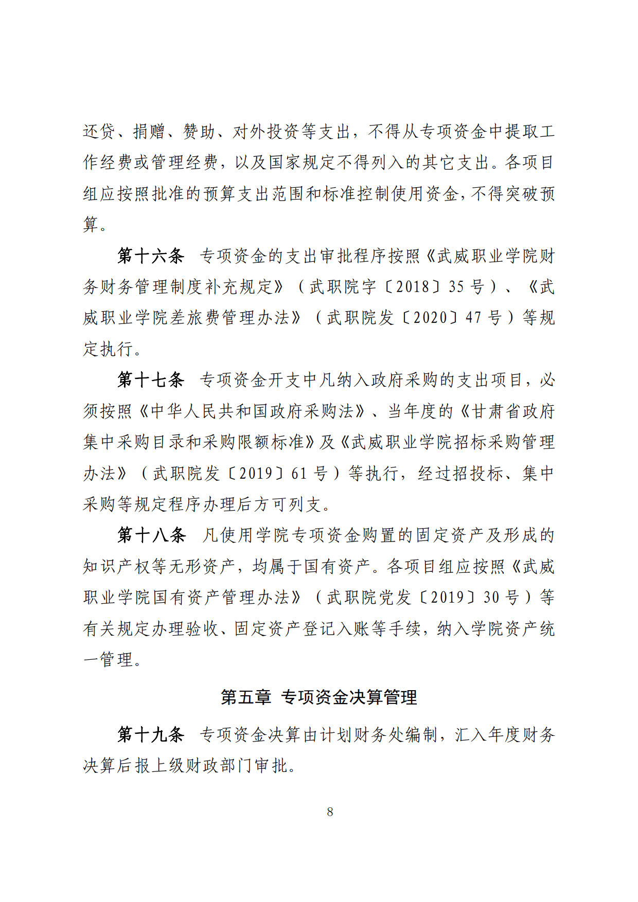 關(guān)于印發(fā)《武威職業(yè)學(xué)院“雙高計(jì)劃”項(xiàng)目建設(shè)專(zhuān)項(xiàng)資金管理辦法》的通知