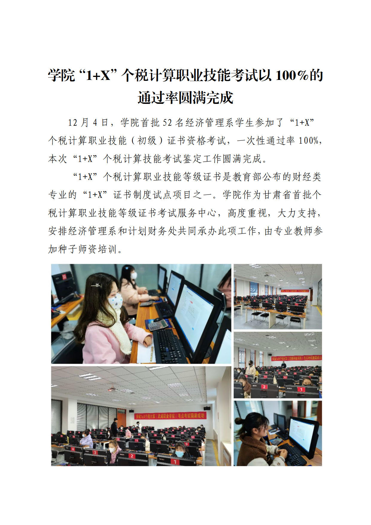 學院“1+X”個稅計算職業(yè)技能考試以100%的通過率圓滿完成