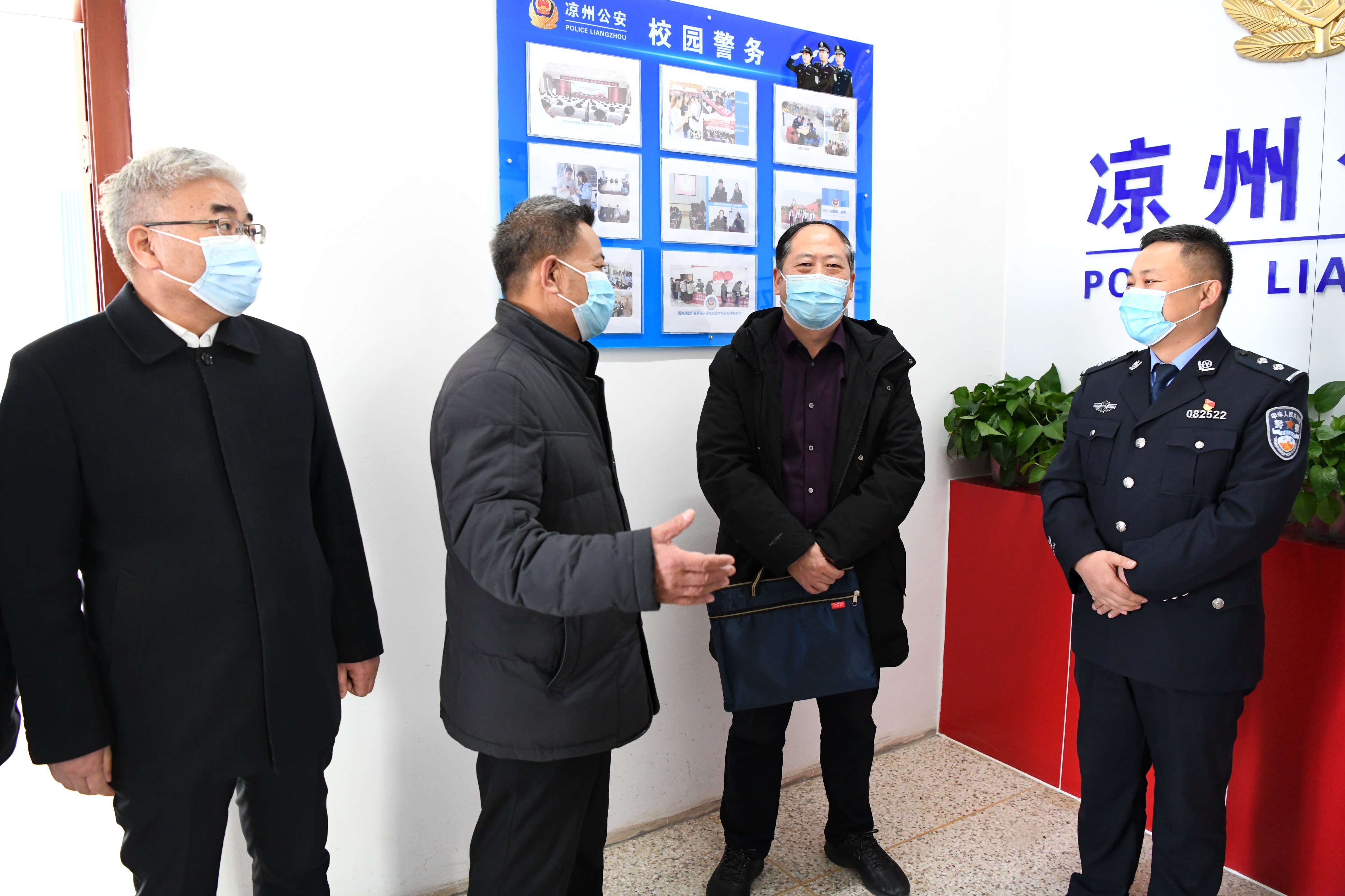 1月13日下午,平安甘肅建設(shè)工作第八考評(píng)組在省高等學(xué)校服務(wù)中心主任崔亮的帶領(lǐng)下來(lái)校實(shí)地檢查考評(píng)2021年度平安校園建設(shè)工作。市委政法委常務(wù)副書記連林中,學(xué)院黨委書記、院長(zhǎng)趙明,黨委委員、副院長(zhǎng)何毅,黨委委員、紀(jì)委書記、監(jiān)察專員陳曉煜,黨委委員、副院長(zhǎng)王守云陪同檢查考評(píng)。