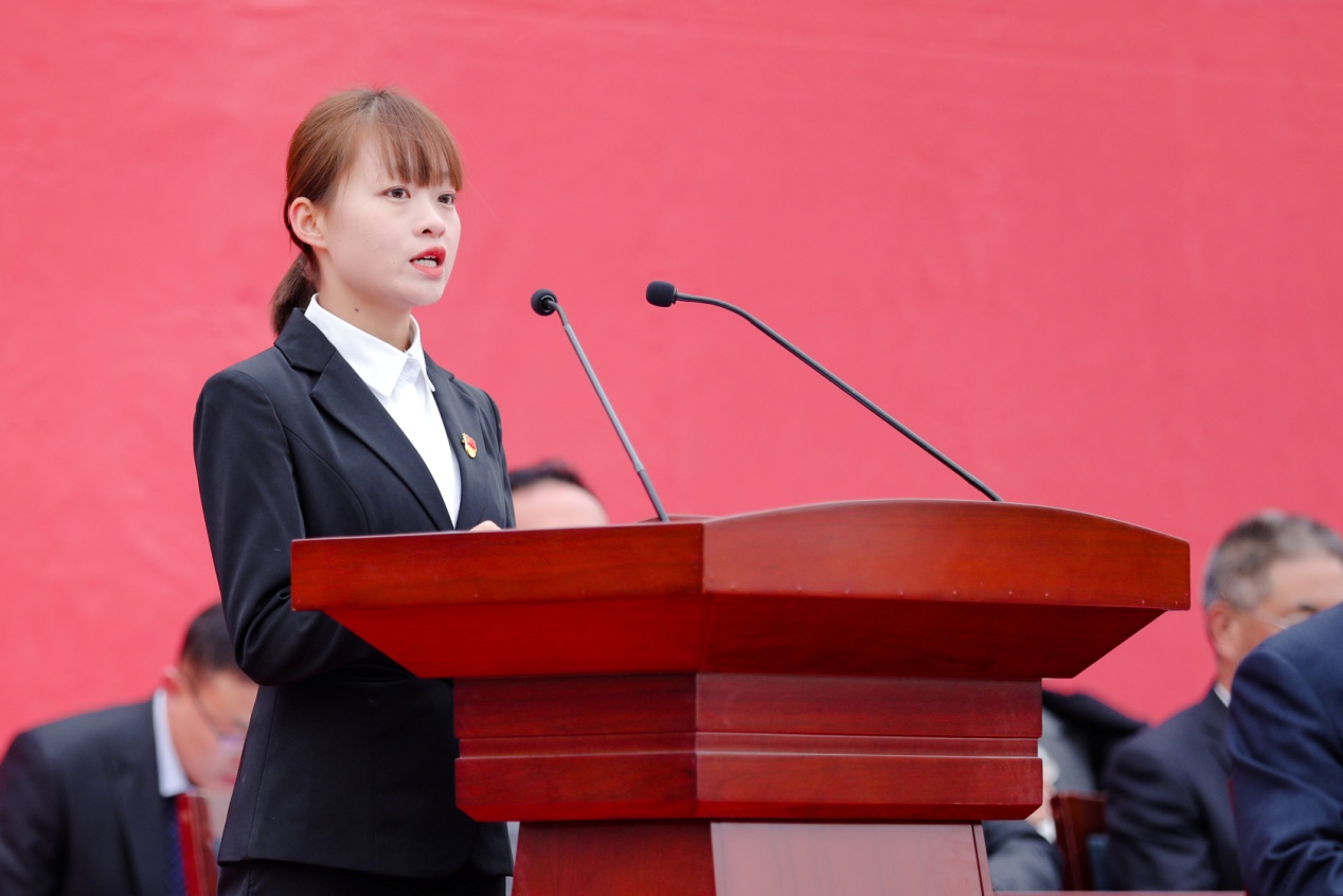 上午9時(shí),大會在莊嚴(yán)的國歌聲中拉開序幕,二十余名學(xué)生代表致獻(xiàn)詞《請黨放心,強(qiáng)國有我》,用最飽滿的聲音,堅(jiān)定地向黨道出了青春的誓言。