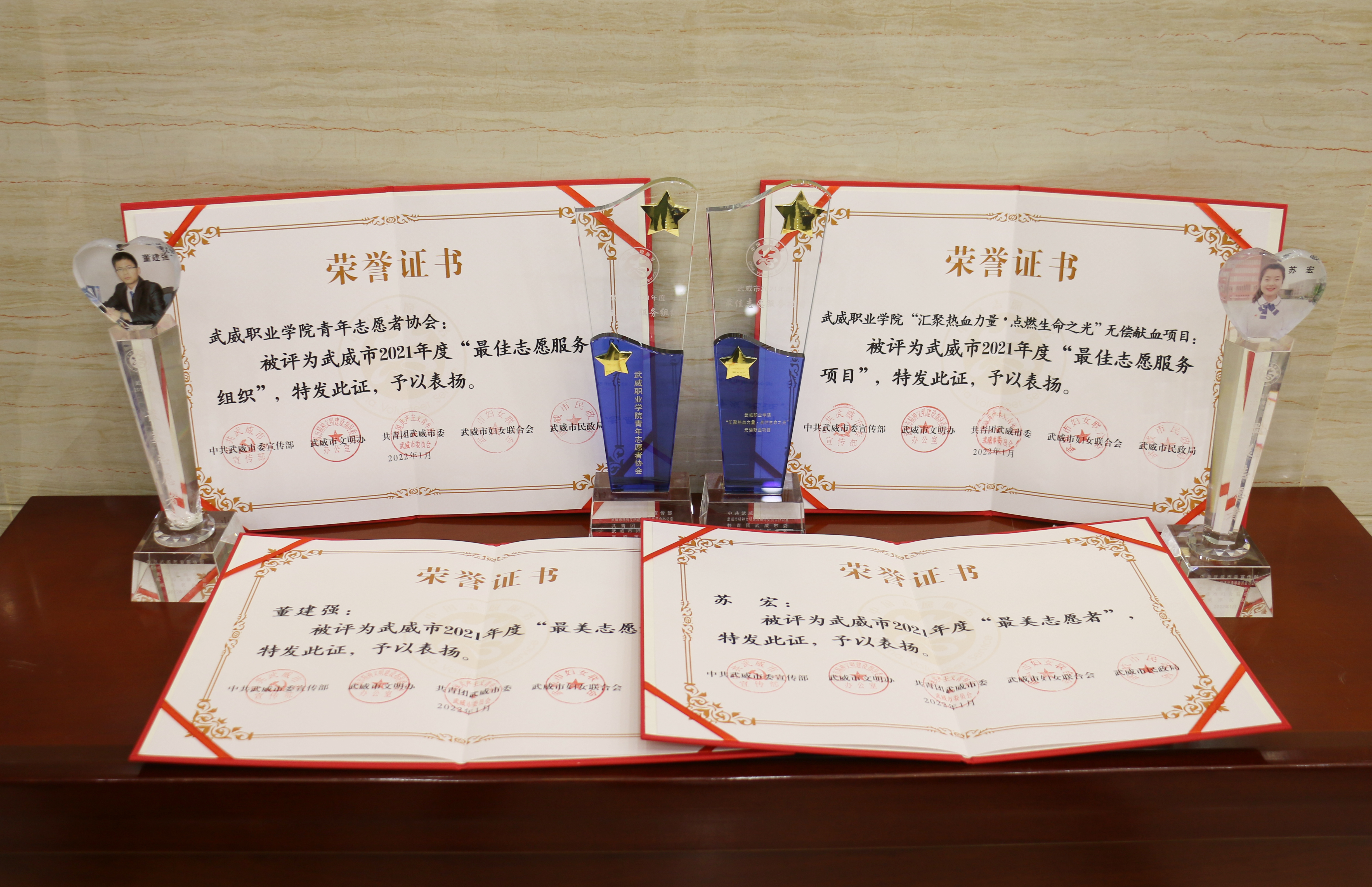 啟動儀式上,對獲得武威市2021年度“最美志愿者”“最佳志愿服務(wù)組織”“最佳志愿服務(wù)項目”“最美志愿服務(wù)社區(qū)”稱號的集體和個人頒發(fā)了證書和獎杯。我校青年志愿者協(xié)會獲得“最佳志愿服務(wù)組織”榮譽(yù)稱號,“匯聚熱血力量·點燃生命之光”無償獻(xiàn)血志愿服務(wù)項目獲得“最佳志愿服務(wù)項目”榮譽(yù)稱號,兩名師生獲得“最美志愿者”榮譽(yù)稱號。