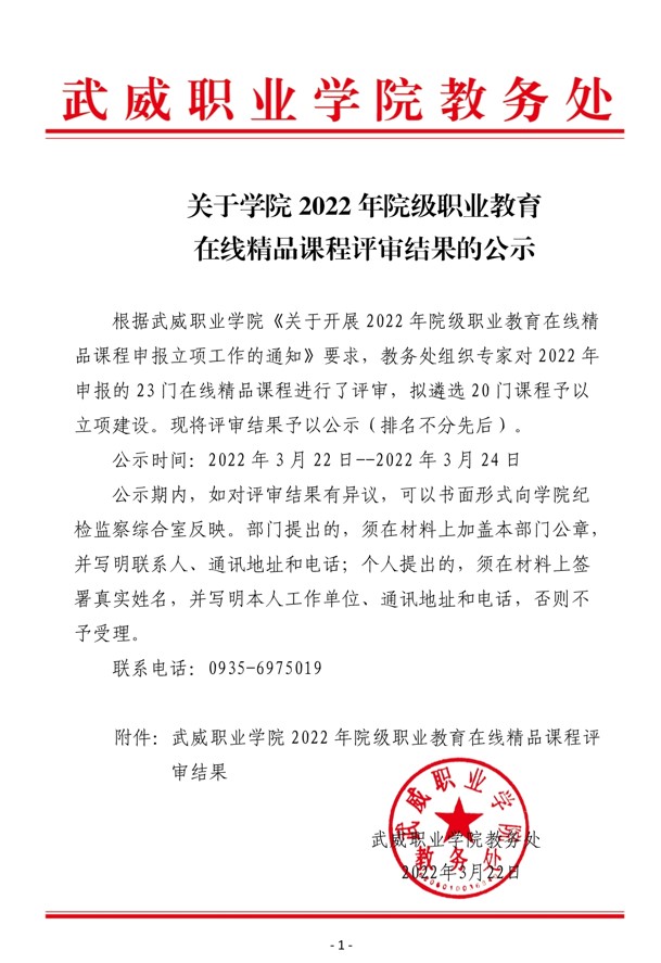關于學院2022年院級職業(yè)教育在線精品課程評審結(jié)果的公示