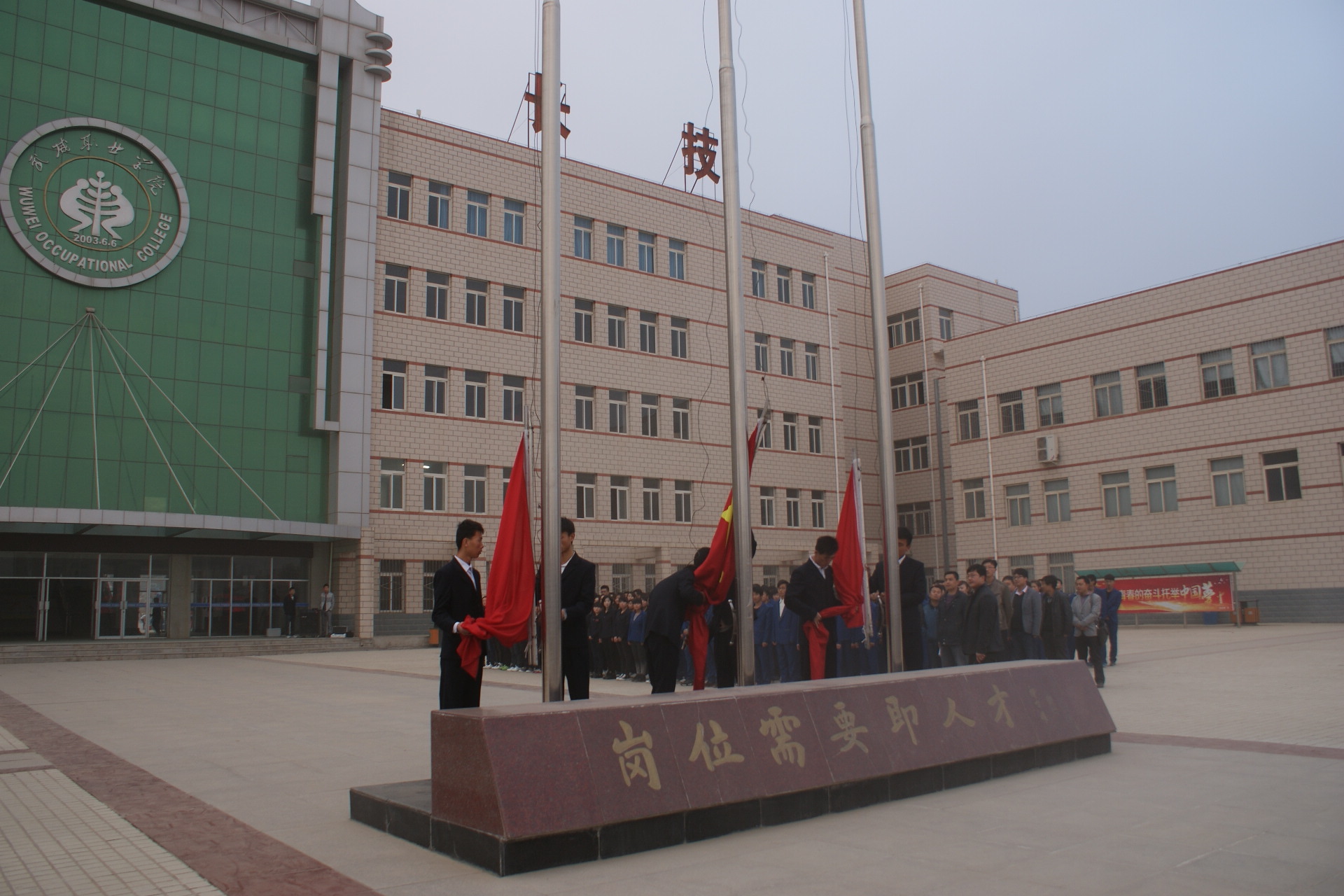 3月24日清晨,能源工程系全體師生在學院1號樓前舉行了莊嚴的升國旗儀式。