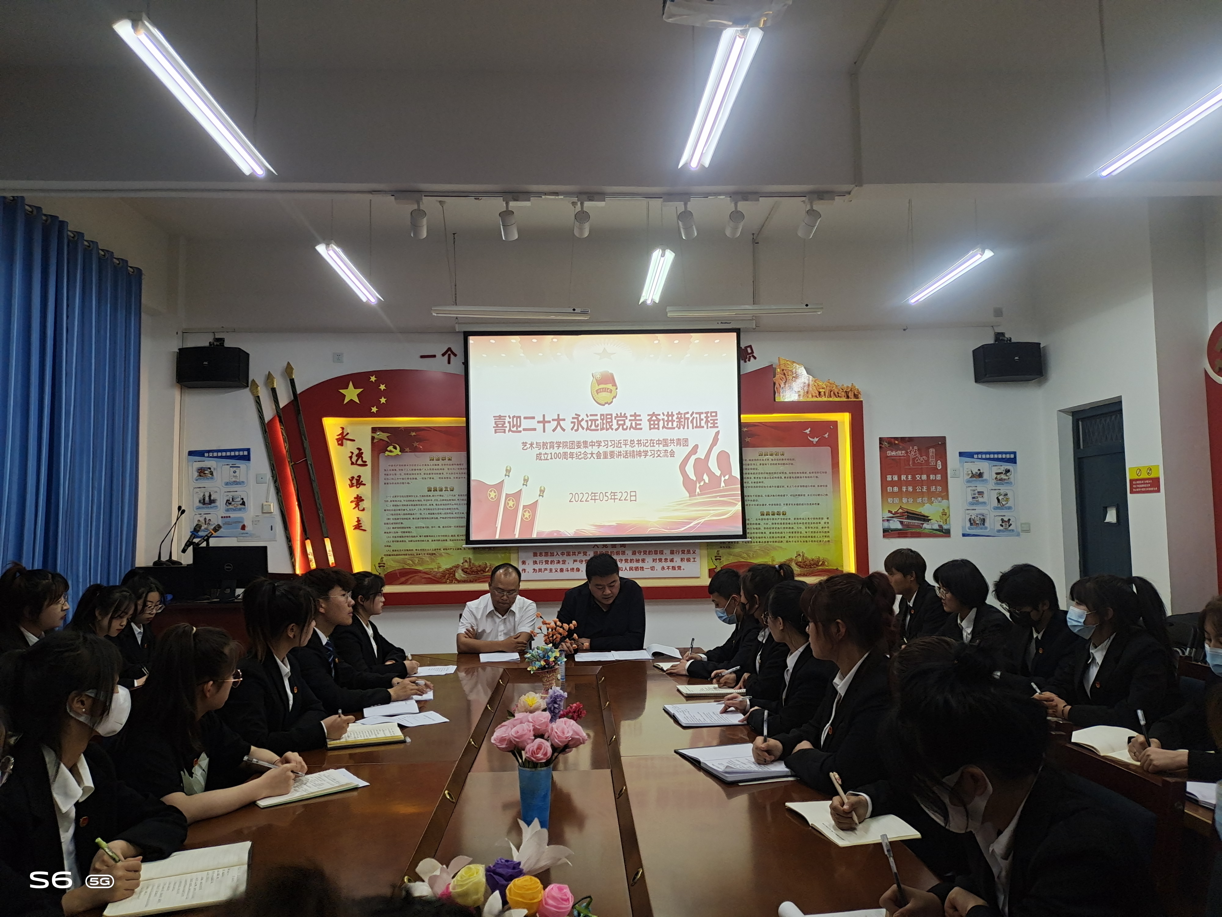 2022年5月22日晚,藝術(shù)與教育學(xué)院團(tuán)委以“喜迎二十大,奮進(jìn)新征程,永遠(yuǎn)跟黨走”為主題,開展習(xí)近平總書記在慶祝中國(guó)共產(chǎn)主義青年團(tuán)成立100周年大會(huì)上的重要講話精神學(xué)習(xí)研討交流會(huì),參會(huì)人員由藝術(shù)與教育學(xué)院副院長(zhǎng)李欣,團(tuán)委書記唐鑫基,20、21級(jí)各班團(tuán)支部書記及優(yōu)秀團(tuán)員代表、預(yù)備黨員、入黨積極分子和入團(tuán)積極分子代表組成。