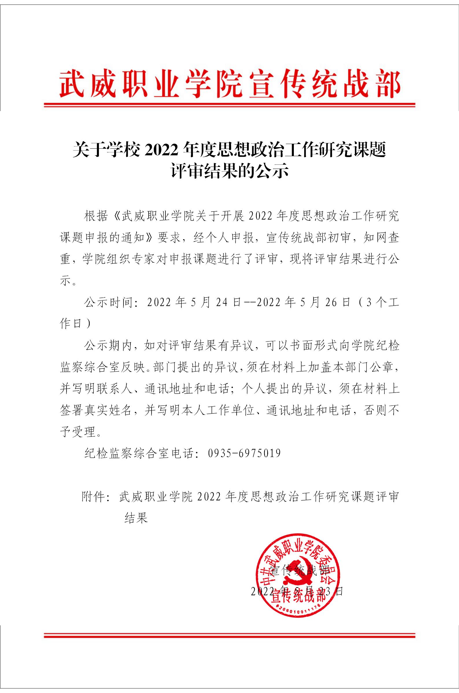 關(guān)于學(xué)校2022年度思想政治工作研究課題評審結(jié)果的公示