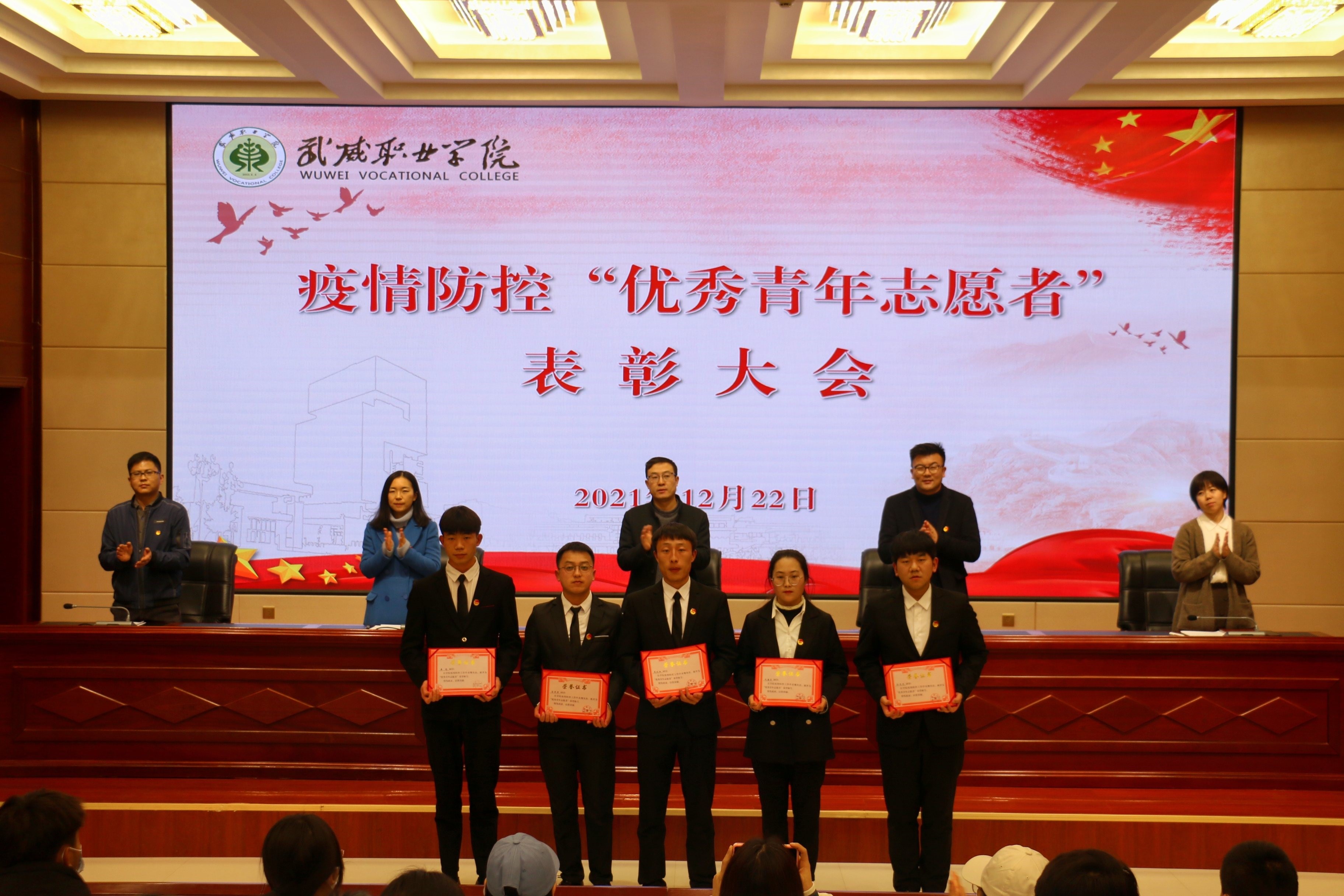 在表彰大會(huì)上,宣讀了《武威職業(yè)學(xué)院關(guān)于對(duì)疫情防控期間優(yōu)秀青年志愿者進(jìn)行通報(bào)表?yè)P(yáng)的決定》,為疫情防控期間優(yōu)秀青年志愿者代表頒發(fā)了榮譽(yù)證書(shū)。