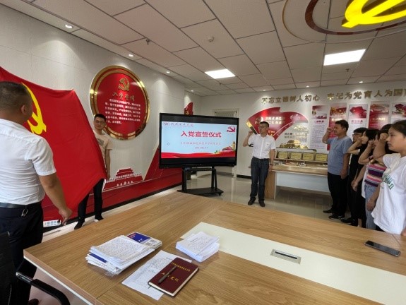 在“七一”來(lái)臨之際,為加強(qiáng)黨員教育、增強(qiáng)黨性觀(guān)念,中科低碳新能源技術(shù)學(xué)院黨總支于2022年6月27日下午在能源樓六樓黨員活動(dòng)室組織開(kāi)展了新黨員入黨宣誓儀式。學(xué)院黨總支全體黨員以及師生預(yù)備黨員參加宣誓儀式。
