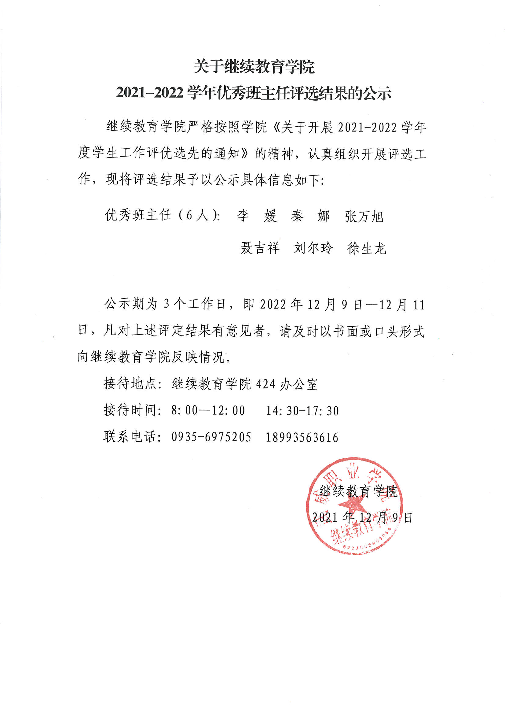 繼續(xù)教育學院關(guān)于2021-2022學年優(yōu)秀班主任評選結(jié)果的公示