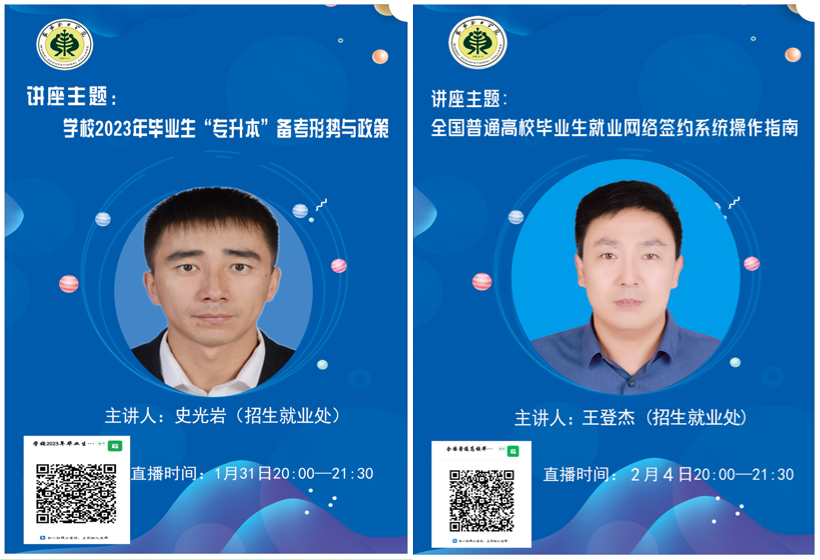 1月31日,由招生就業(yè)處老師史光巖給2023屆畢業(yè)生作線上就業(yè)指導(dǎo)講座。講座以《學(xué)校2023年畢業(yè)生“專升本”備考形勢與政策》為題,從政策文件、招生對象、招生院校及專業(yè)、報考方式、考試方式和時間節(jié)點六個方面,對專升本政策和報考注意事項進行了解讀,引導(dǎo)畢業(yè)生認清形勢、樹立目標,鼓勵畢業(yè)生提升學(xué)歷,幫助畢業(yè)生合理規(guī)劃未來、追逐本科夢想,促進高質(zhì)量就業(yè)。同時,招生就業(yè)處也將繼續(xù)做好畢業(yè)生在報考、備考、送考等各階段的服務(wù)工作,助力畢業(yè)生實現(xiàn)升學(xué)夢。