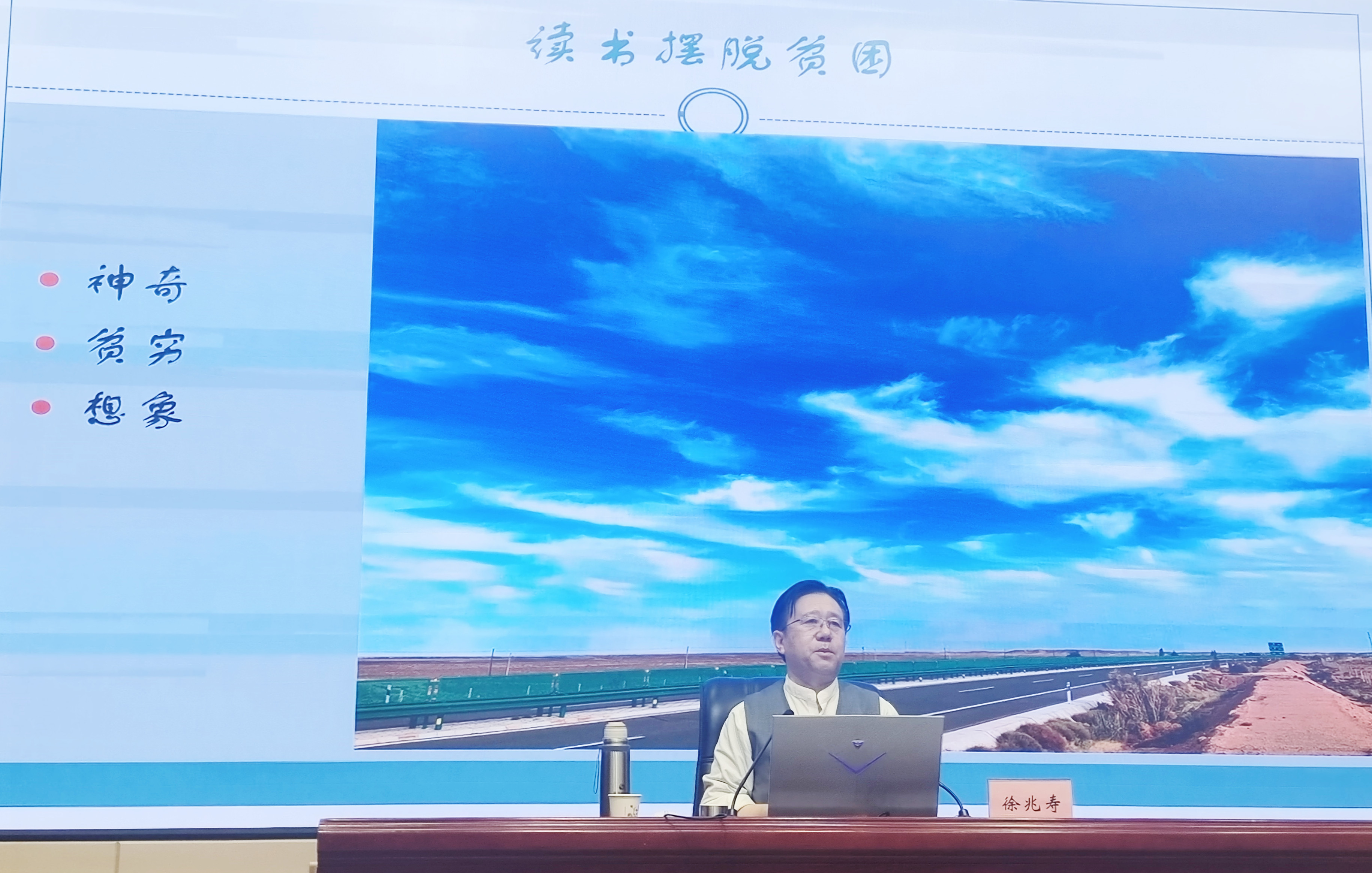 徐兆壽在講座中回顧了自己從事文學(xué)創(chuàng)造的初心、經(jīng)歷和創(chuàng)作風格的變化,向師生分享了自己的心路歷程和文學(xué)創(chuàng)作道路。勉勵同學(xué)們要懷揣夢想,傳承中國優(yōu)秀傳統(tǒng)文化,對世界充滿好奇,用知識改變命運,在實現(xiàn)中華民族偉大復(fù)興中貢獻自己。