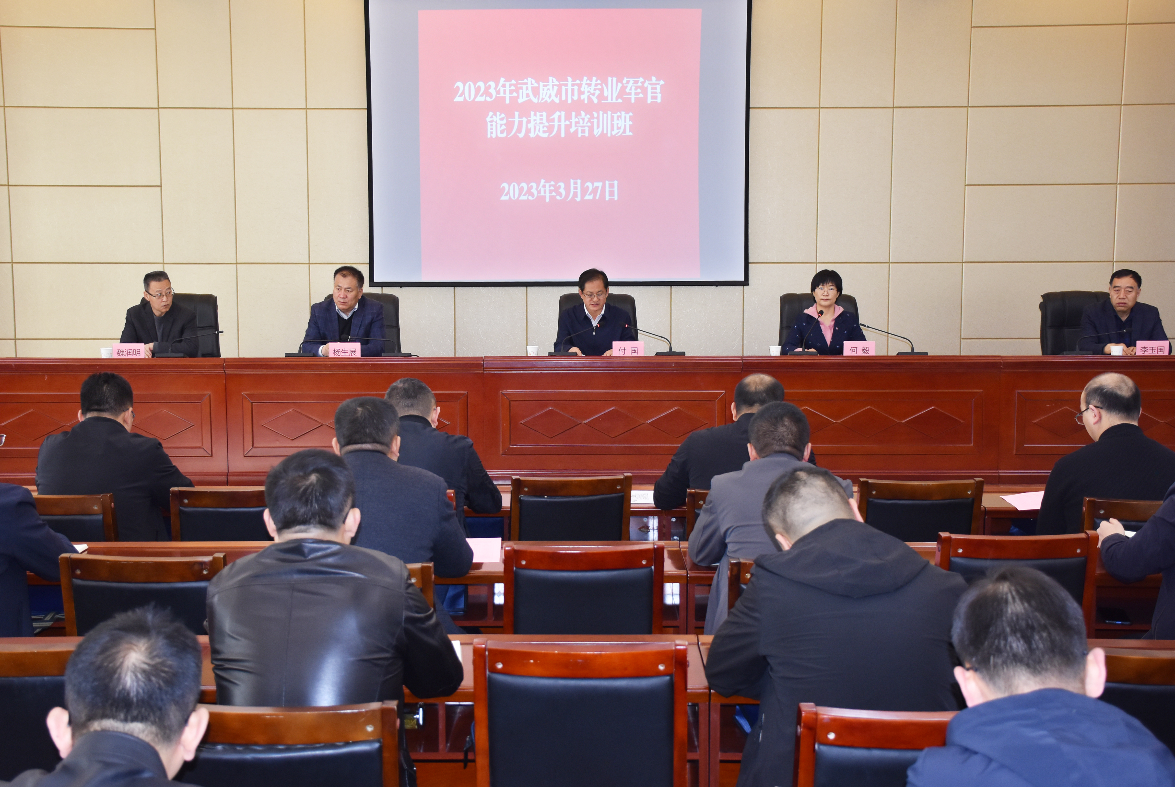 2023年3月27日,由武威市退役軍人事務(wù)局主辦、武威職業(yè)學(xué)院承辦的2023年武威市轉(zhuǎn)業(yè)軍官能力提升培訓(xùn)在武威職業(yè)學(xué)院行樹樓北側(cè)報告廳舉行開班儀式。這次培訓(xùn)是深入貫徹落實黨的二十大精神和習(xí)近平總書記關(guān)于退役軍人工作的重要論述和指示批示精神,全面貫徹新發(fā)展理念,以深入開展“三抓三促”行動為契機,以提高轉(zhuǎn)業(yè)軍官適應(yīng)能力、履職能力和綜合素質(zhì)為重點,促進轉(zhuǎn)業(yè)軍官真正以過硬本領(lǐng)、優(yōu)良作風(fēng)、扎實成效服務(wù)武威經(jīng)濟社會高質(zhì)量發(fā)展的重要舉措。