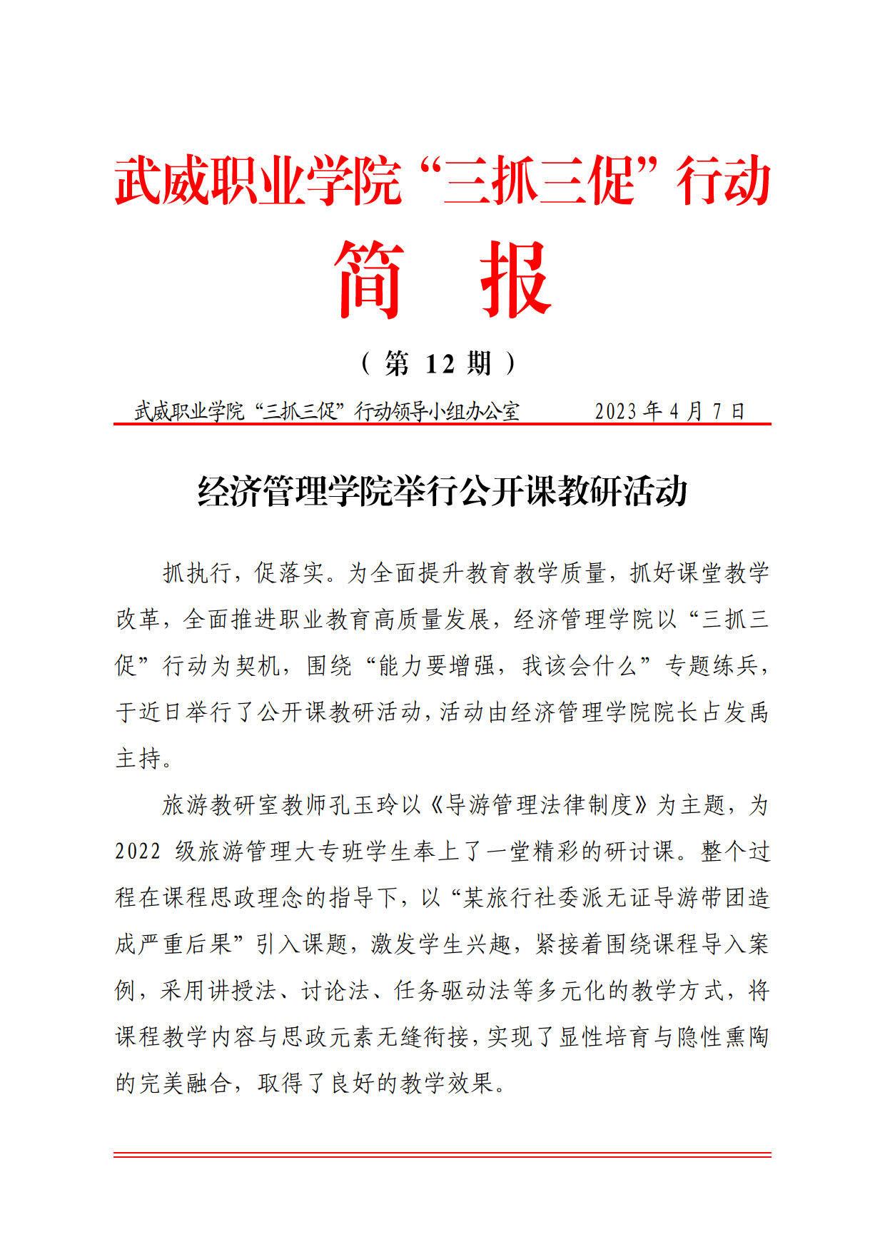 簡(jiǎn)報(bào)第12期:經(jīng)濟(jì)管理學(xué)院舉行公開(kāi)課教研活動(dòng)