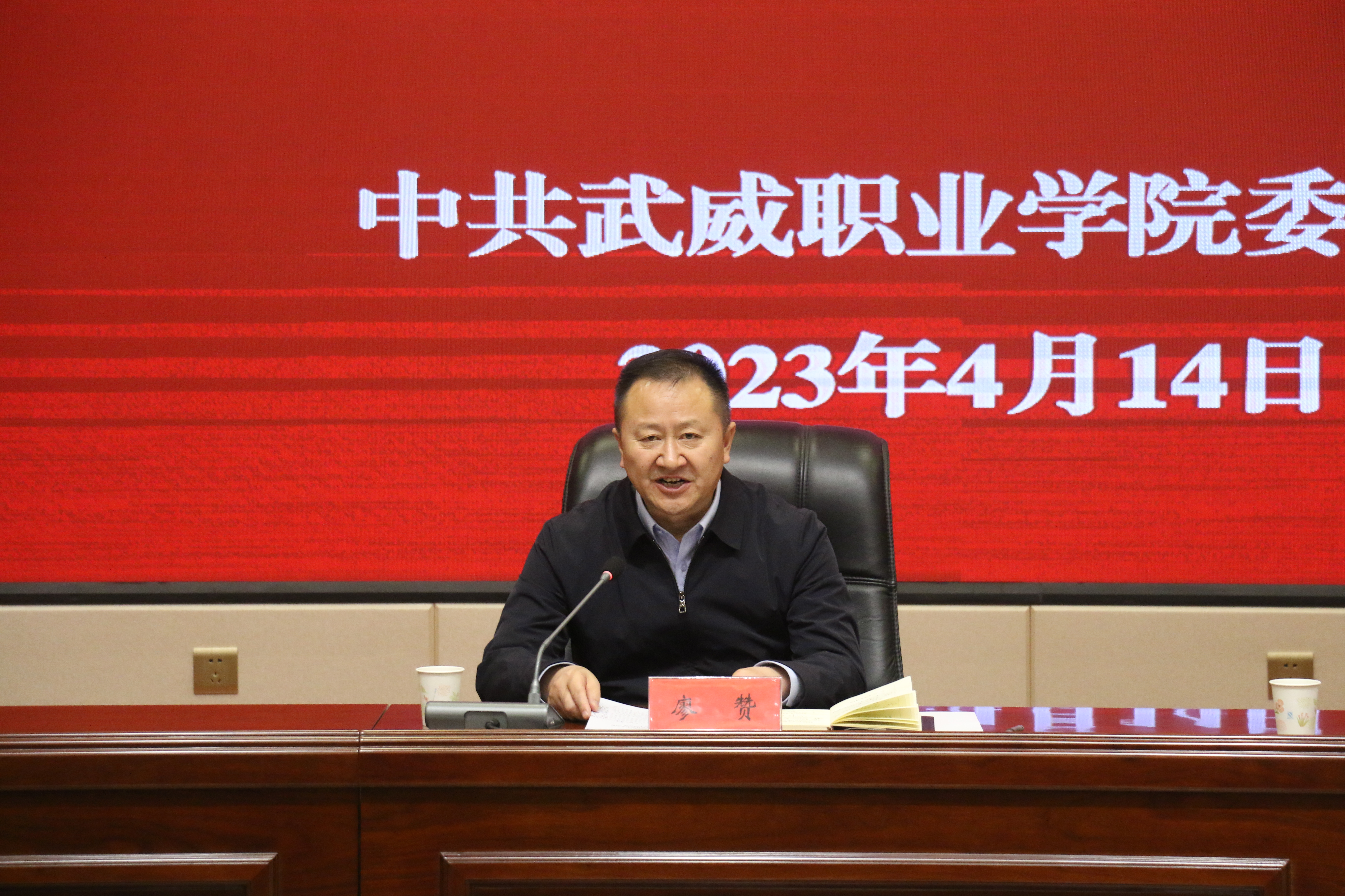 4月14日下午,學(xué)校召開學(xué)習(xí)貫徹習(xí)近平新時(shí)代中國特色社會(huì)主義思想主題教育動(dòng)員部署會(huì)議。省委第十巡回指導(dǎo)組副組長、省景泰川電力提灌水資源利用中心黨委委員、副主任廖贊到會(huì)指導(dǎo)并講話。學(xué)校黨委書記、校長、主題教育領(lǐng)導(dǎo)小組組長趙明主持會(huì)議,傳達(dá)中央主題教育工作會(huì)議精神和省委主題教育動(dòng)員部署會(huì)議精神并作動(dòng)員講話。