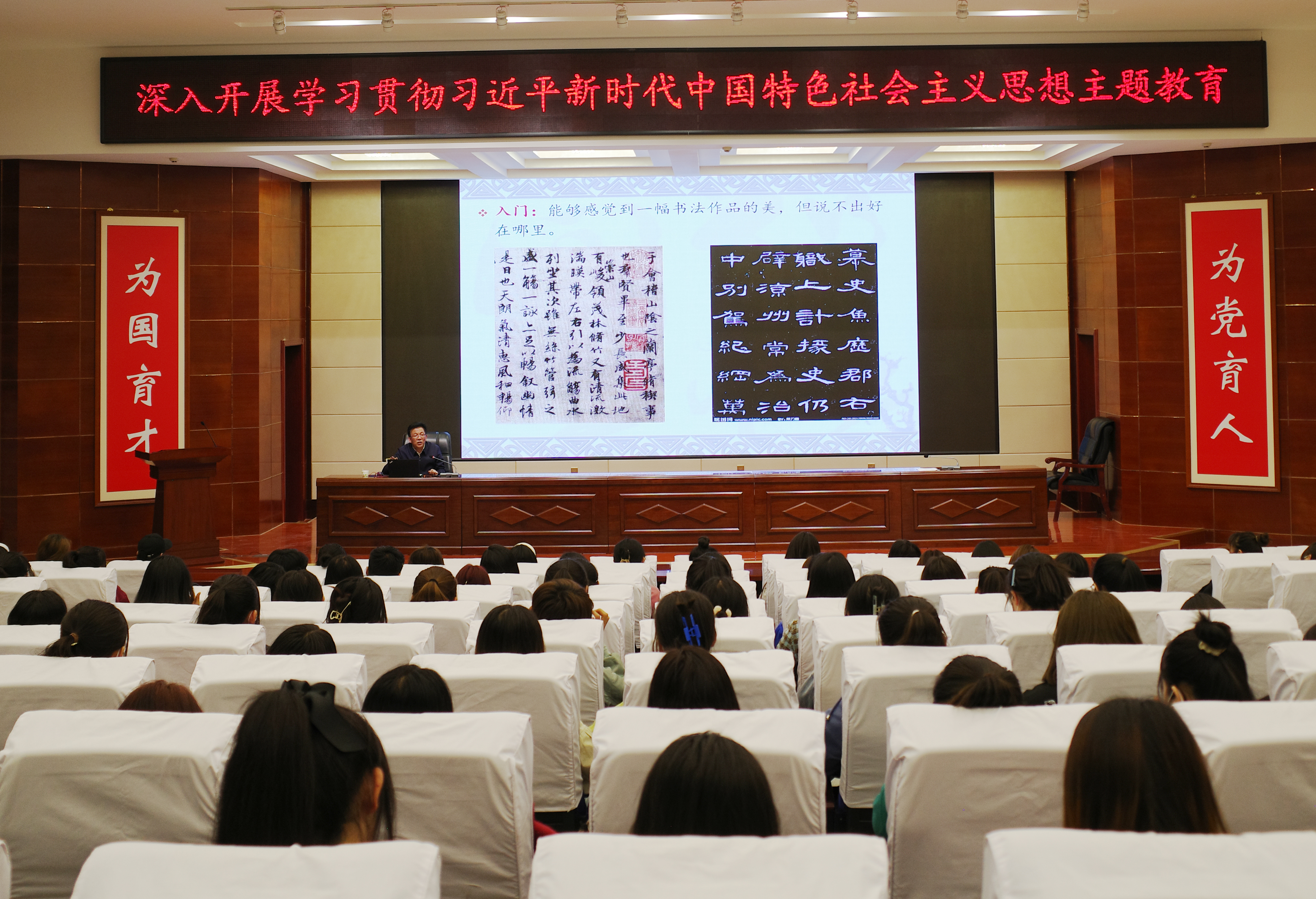 活動中,齊澤山在菁英廳為師生做了題為“如何欣賞書法作品”專題講座,他介紹了中國書法藝術的起源、傳統(tǒng)、特點,以《蘭亭序》《曹全碑》等多幅經(jīng)典書法作品為例,深入解析了書法藝術的魅力與內(nèi)涵,清晰呈現(xiàn)了中國書法悠久的歷史脈絡,使師生們對中國書法藝術的起源與發(fā)展有了更加深刻地理解。講座引經(jīng)據(jù)典、風趣幽默、親切自然,讓師生在輕松愉悅的氛圍中升華了對書法藝術的審美感受。師生們紛紛表示,此次講座是一次難得的學習機會,受益匪淺,對中國書法藝術有了更深入、更全面的了解。