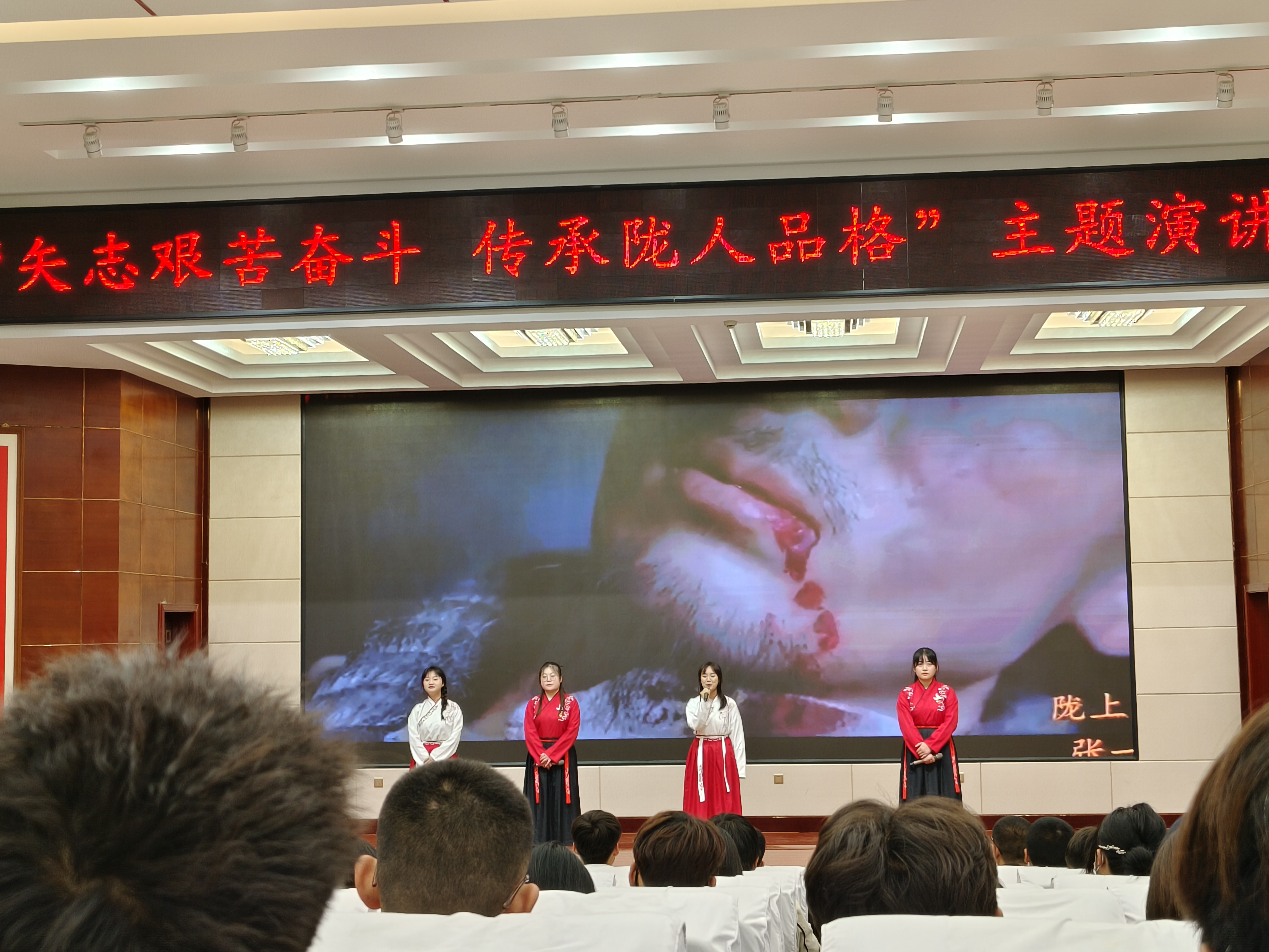 ? ? ? ?本次主題演講活動,不僅展示了同學們奮發(fā)向上的良好風采,更激發(fā)了同學們愛黨愛國的熱情,發(fā)揮了良好的育人作用。我校將以“矢志艱苦奮斗 傳承隴人品格”青年主題文化活動為契機,以同學們喜聞樂見的活動形式為載體,引導同學們傳承隴人品格,爭做新時代的好青年。