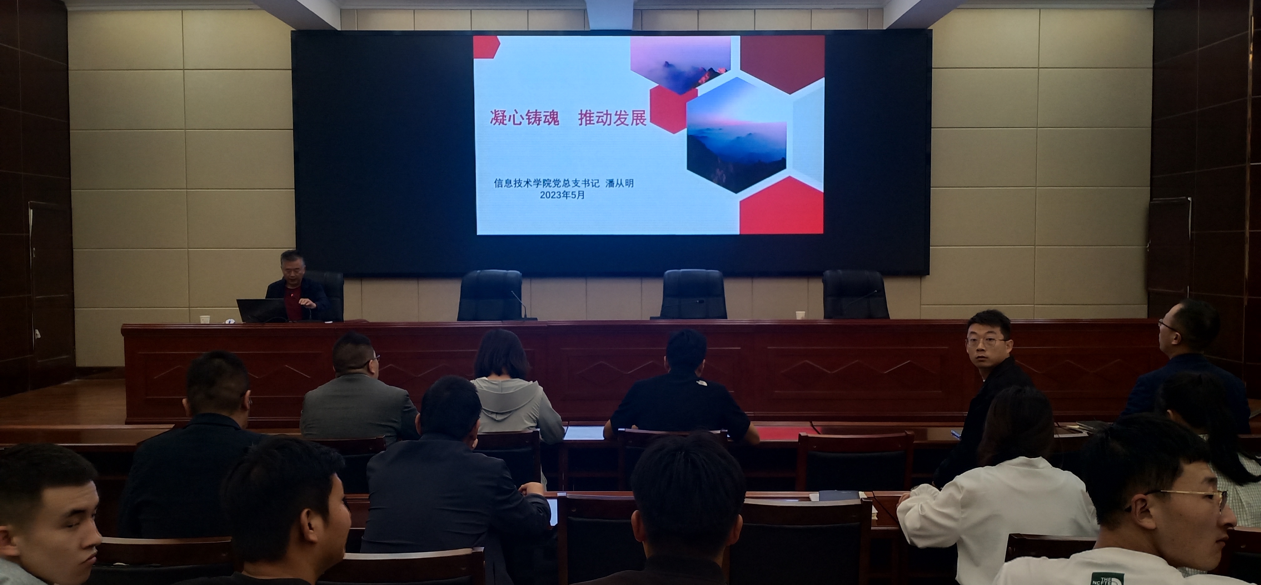 5月25日,信息技術(shù)學(xué)院黨總支開(kāi)展學(xué)習(xí)貫徹習(xí)近平新時(shí)代中國(guó)特色社會(huì)主義思想主題教育專題黨課。黨總支書(shū)記潘從明以《凝心鑄魂 推動(dòng)發(fā)展》為題講授主題教育專題黨課,全體師生黨員參加會(huì)議。
