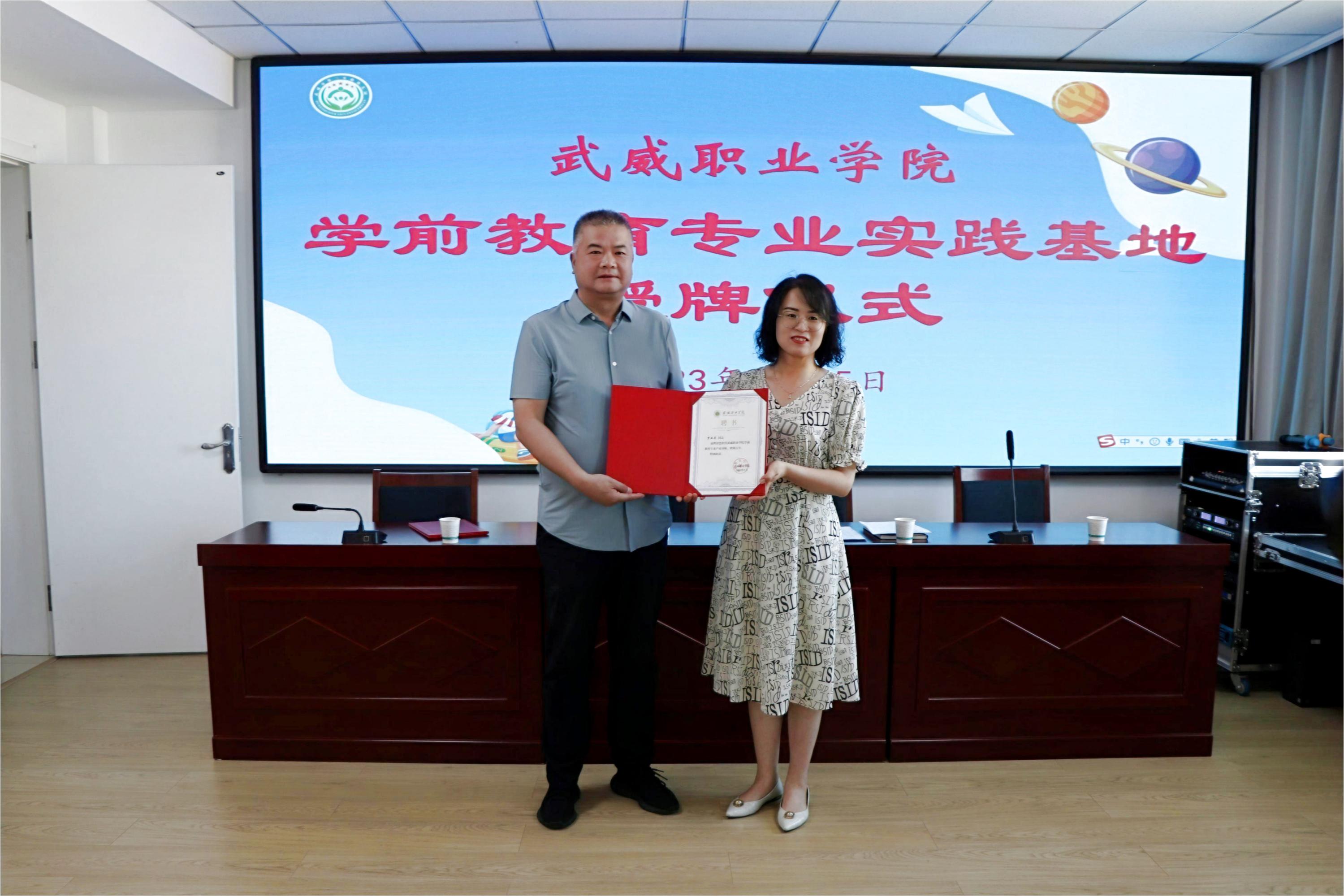 6月15日,武威職業(yè)學(xué)院學(xué)前教育專業(yè)實踐基地授牌儀式分別在武威市第二實驗幼兒園、涼州區(qū)第五幼兒園舉行。學(xué)校黨委委員、副校長王守云,武威市第二實驗幼兒園園長羅亞莉,涼州區(qū)第五幼兒園園長張俊山出席授牌儀式。藝術(shù)與教育學(xué)院教師代表,市區(qū)幼兒園領(lǐng)導(dǎo)班子成員及部分教師參加授牌儀式。