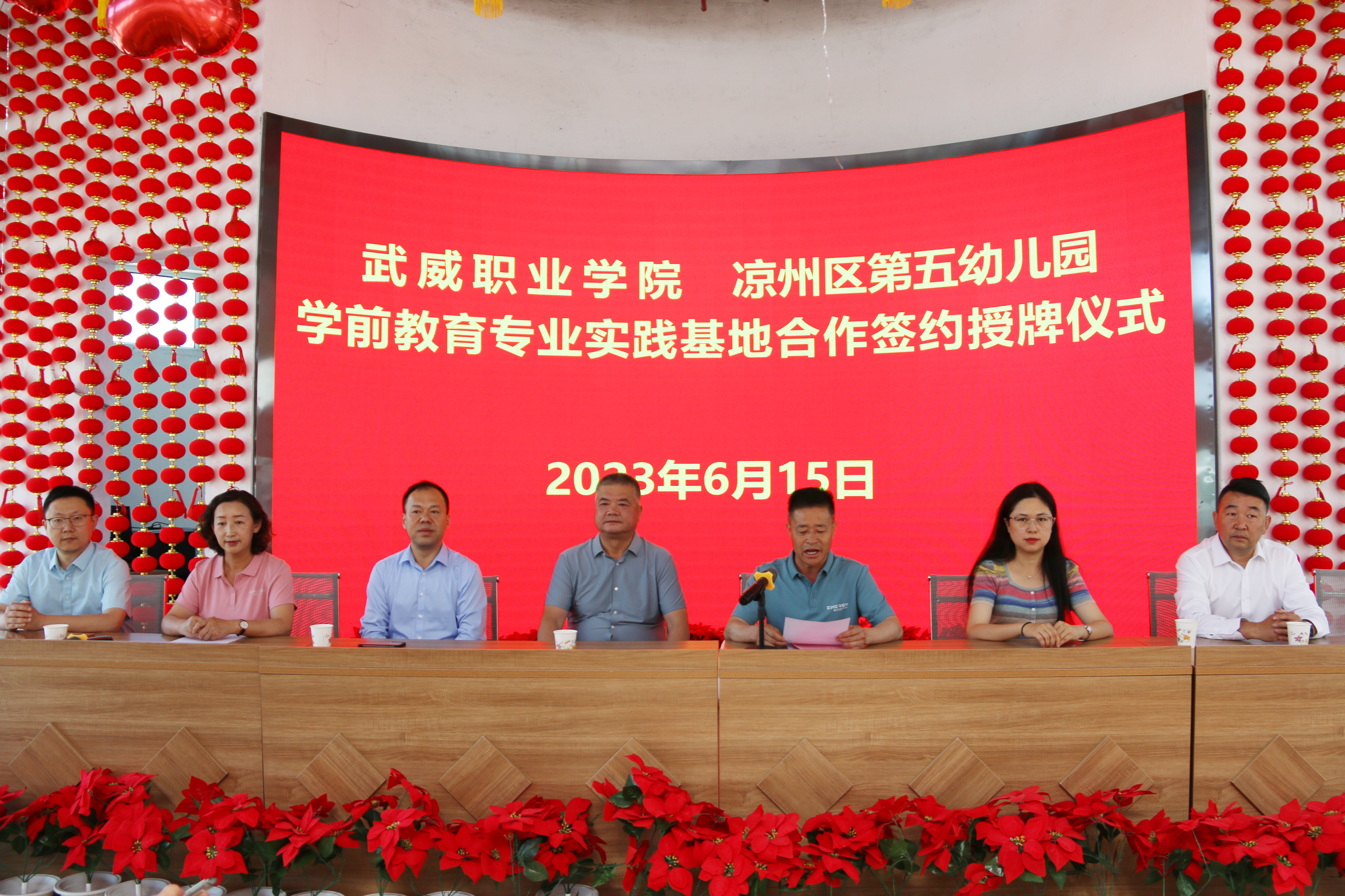 6月15日,武威職業(yè)學院學前教育專業(yè)實踐基地授牌儀式分別在武威市第二實驗幼兒園、涼州區(qū)第五幼兒園舉行。學校黨委委員、副校長王守云,武威市第二實驗幼兒園園長羅亞莉,涼州區(qū)第五幼兒園園長張俊山出席授牌儀式。藝術與教育學院教師代表,市區(qū)幼兒園領導班子成員及部分教師參加授牌儀式。