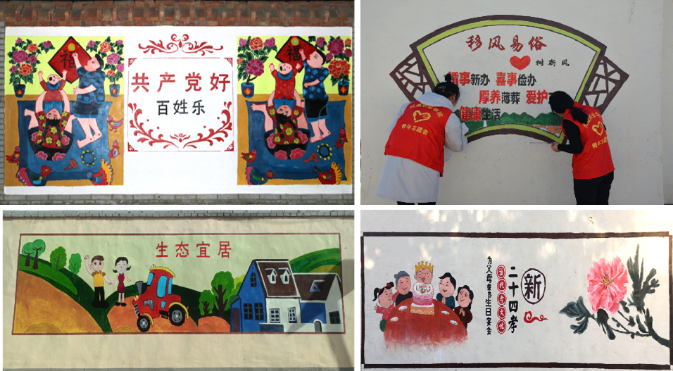 自2019 年以來,武威職業(yè)學院堅持“立足地方、融入地方、服務地方”的發(fā)展理念,將優(yōu)勢學科專業(yè)與武威市經濟社會發(fā)展緊密結合,組織師生開展“打造人文美居助力鄉(xiāng)村振興”墻體彩繪志愿服務項目,通過墻體彩繪反映黨的領導下農村精神風貌的變化和取得的成就,將村莊重點街巷屋面墻體繪制出一幅幅反映美麗鄉(xiāng)村建設、社會主義核心價值觀、移風易俗、鄉(xiāng)風文明等為主題的墻體畫,形象生動、 通俗易懂的內容讓村民變“被動學”為“主動看”,不僅展現了農村新生活、農業(yè)新氣象、農民新面貌,美化了村容村貌,為美麗鄉(xiāng)村建設、人居環(huán)境美化添磚加瓦。