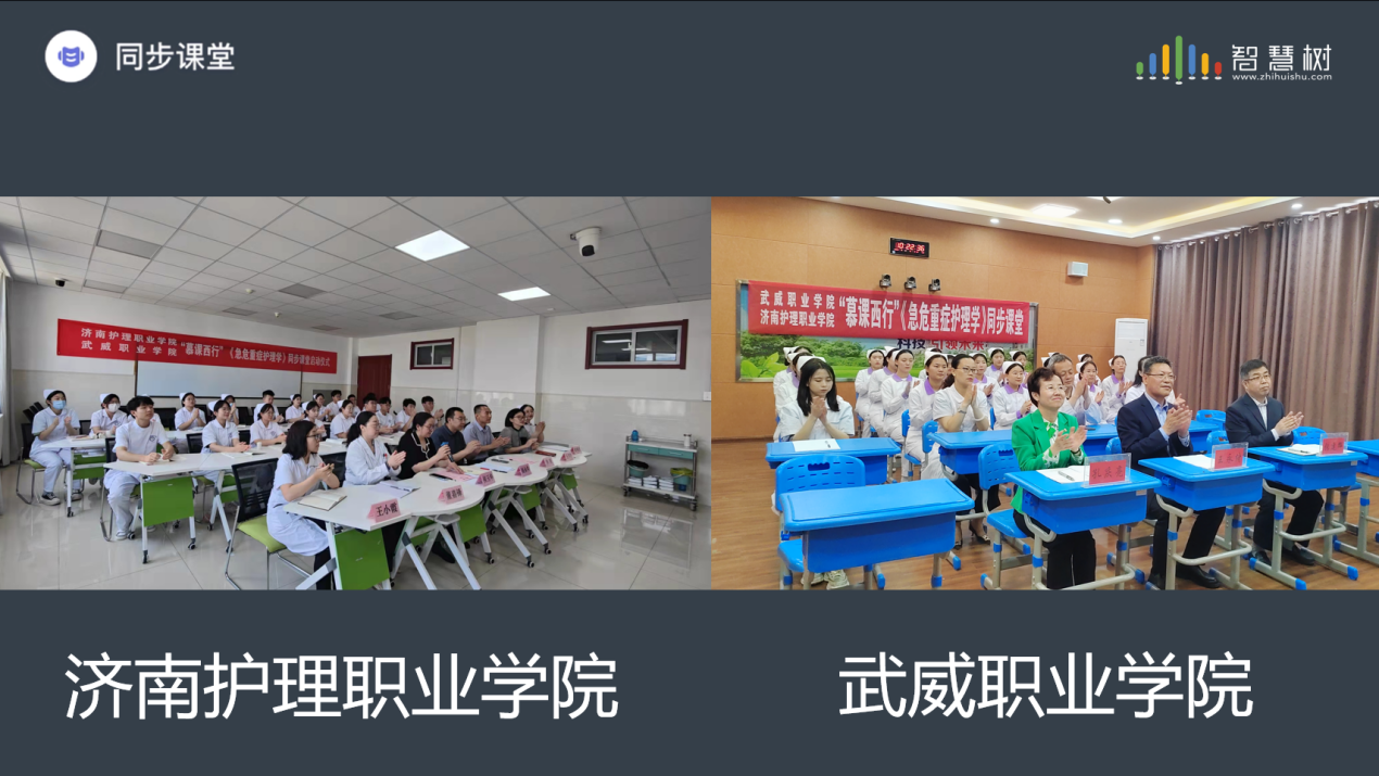 濟南護(hù)理職業(yè)學(xué)院黨委委員、副院長展永生在啟動儀式上致辭,介紹了濟南護(hù)理職業(yè)學(xué)院校史校情,提出兩所高校開展同步課堂的意義,兩校將以“慕課西行-同步課堂”為契機,探索教學(xué)新模式,加深優(yōu)質(zhì)資源共享、合作、交流。武威職業(yè)學(xué)院黨委委員、副校長王永緒在致辭中向兄弟院校介紹了我校的基本情況,并預(yù)祝本次活動圓滿成功,希望雙方學(xué)校能夠加深之間的合作與交流,攜手提升辦學(xué)質(zhì)量,推動高等教育的均衡發(fā)展,同時感謝智慧樹能夠提供這次機會使兩校相聚于云端,打破空間壁壘,跨越千里,進(jìn)行了一次寶貴的信息化教學(xué)探索。