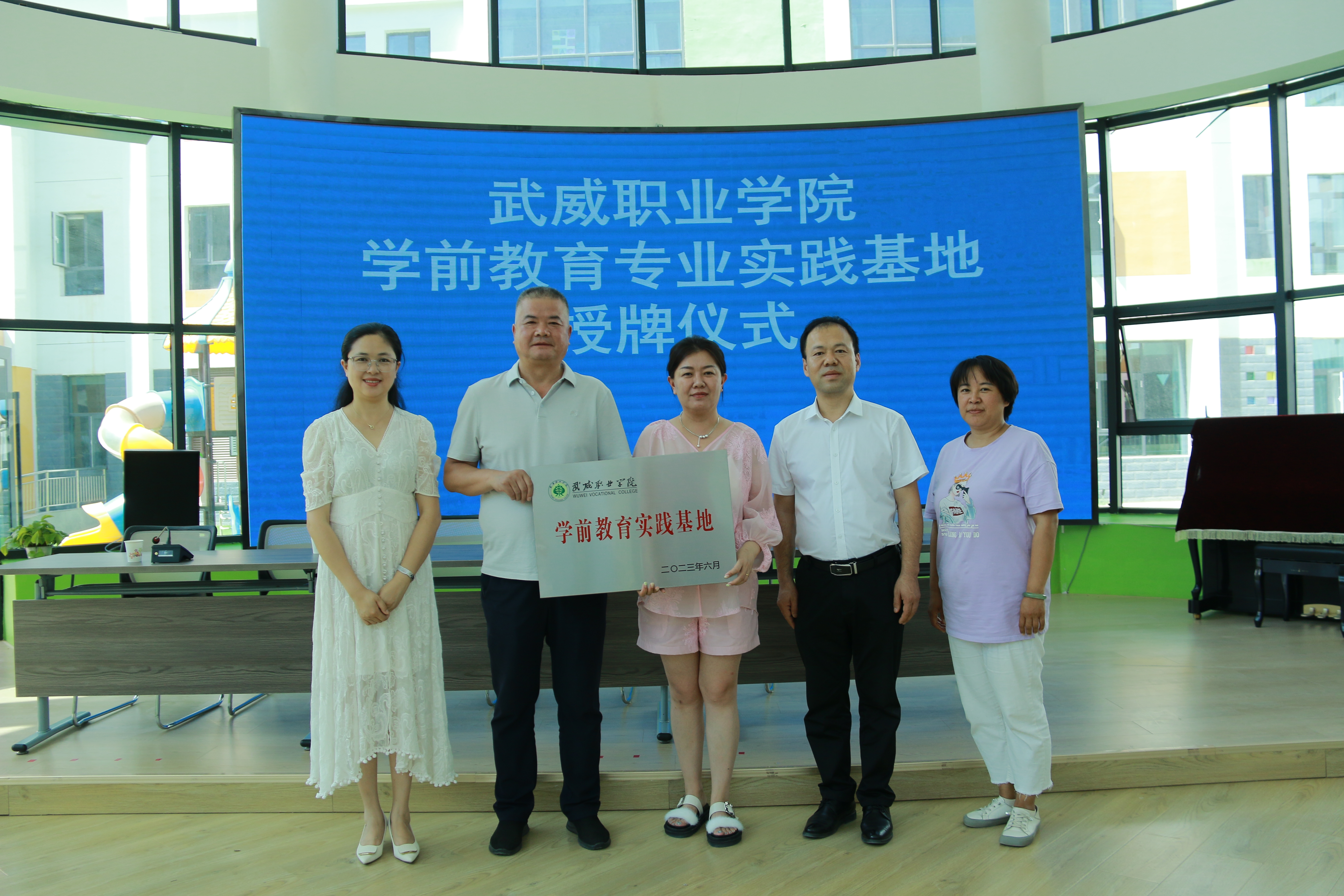 為加強(qiáng)學(xué)前教育專業(yè)建設(shè),強(qiáng)化學(xué)生實(shí)踐能力,創(chuàng)新實(shí)踐教學(xué)改革,近日,學(xué)校在市區(qū)幼兒園舉行學(xué)前教育實(shí)踐基地授牌儀式。學(xué)校黨委委員、副校長王守云,藝術(shù)與教育學(xué)院相關(guān)負(fù)責(zé)人,市區(qū)幼兒園主要負(fù)責(zé)人、教師代表及學(xué)校見習(xí)學(xué)生參加儀式。