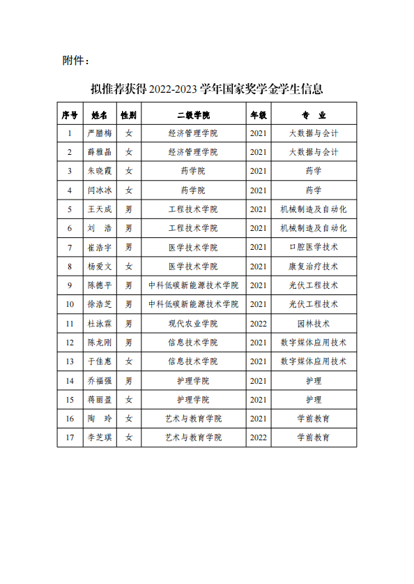 武威職業(yè)學(xué)院2022-2023學(xué)年國家獎學(xué)金候選人公示
