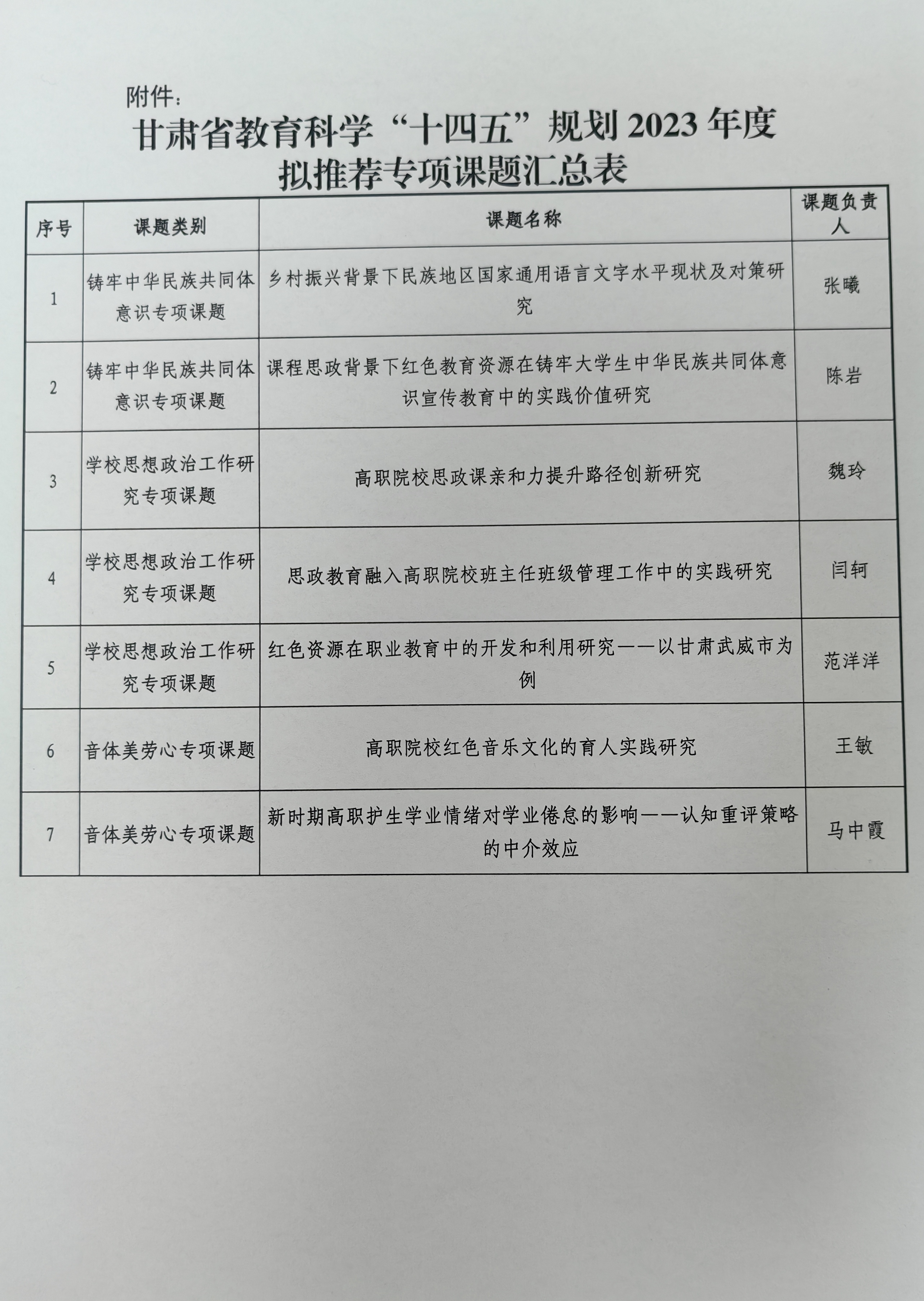 關(guān)于擬推薦甘肅省教育科學(xué)“十四五”規(guī)劃2023年度專項(xiàng)課題名單的公示