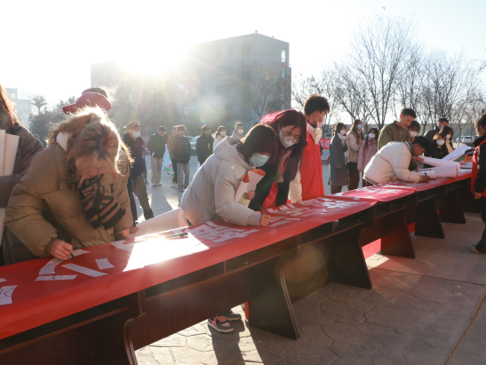 防艾知識宣傳志愿隊伍在大學(xué)生活動中心廣場發(fā)放宣傳手冊,制作并贈送紅絲帶標(biāo)志400余個,活動中對300余名學(xué)生進(jìn)行了免費(fèi)艾滋病檢測。同學(xué)們一同在宣傳條幅上簽名,祝福語書滿了紅絲帶,一撇一捺、一筆一劃,都是無數(shù)的信念與期望的匯聚,是大家用無聲的行動承諾自己防艾的決心。