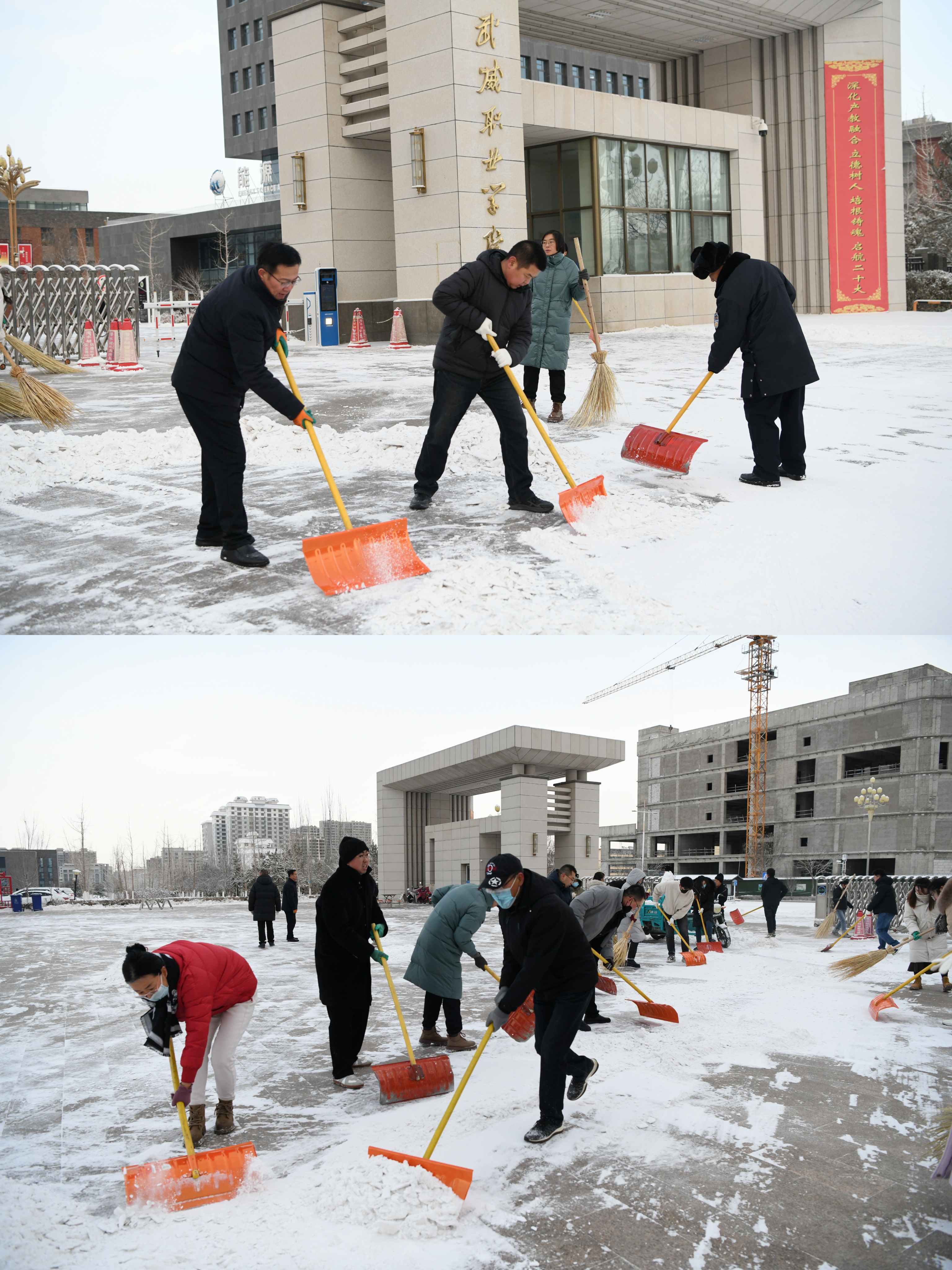 12月14日,我市迎來了一場(chǎng)大雪。紛紛揚(yáng)揚(yáng)的雪花為美麗的校園披上了潔白的盛裝,也為學(xué)校的出行帶來了不便。為助力全國(guó)文明城市創(chuàng)建工作,保障全校師生的出行安全和道路暢通。15日清晨,學(xué)校組織行政工作人員開展鏟雪除冰志愿服務(wù)活動(dòng)。