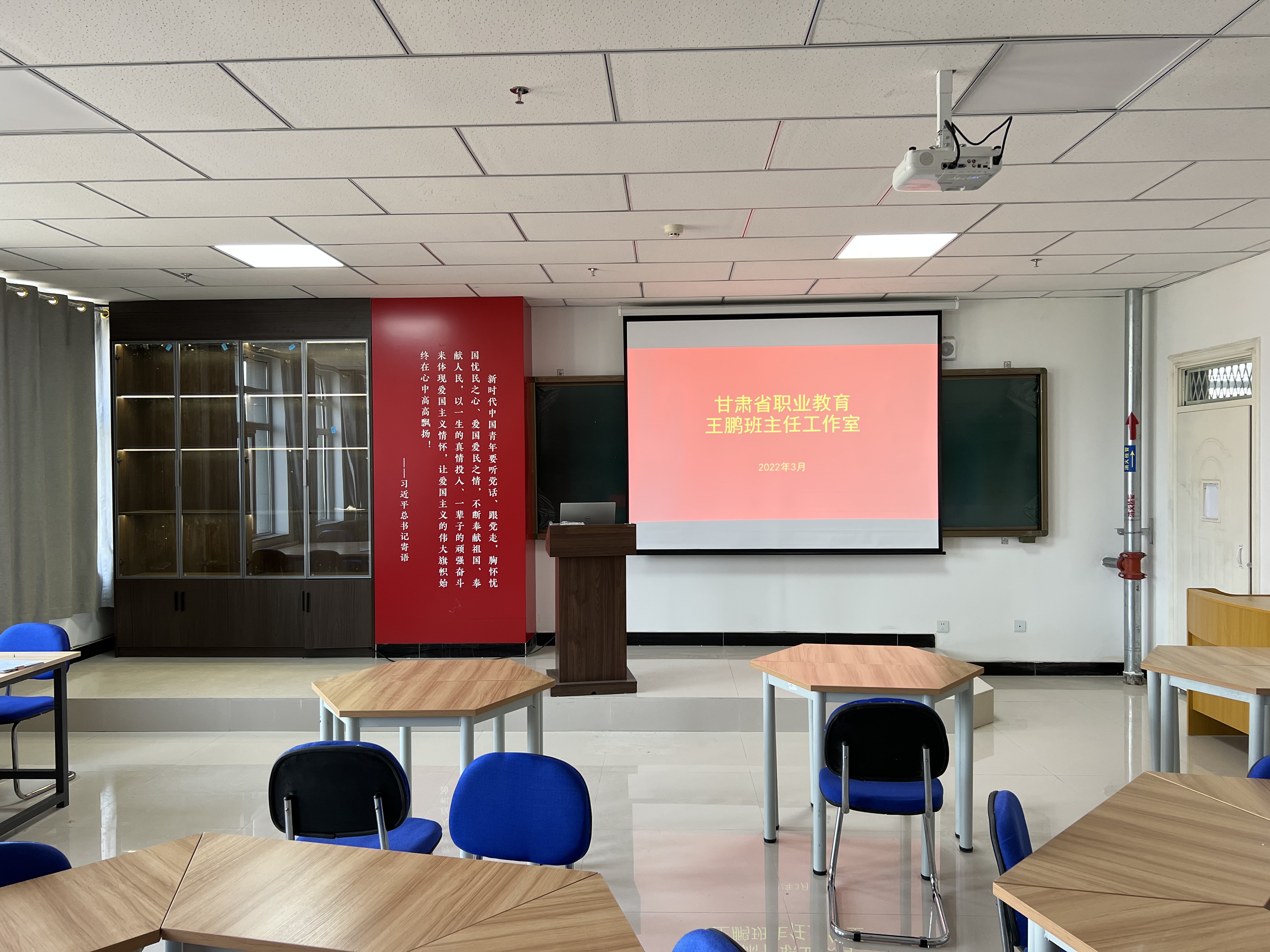 甘肅省職業(yè)教育王鵬班主任工作室于2021年7月由甘肅省教育廳批準成立,建設(shè)周期四年,特聘顧問2名,骨干成員8名,試點班級2個。工作室位于能源科技樓二樓,建設(shè)面積50平方米,設(shè)置業(yè)務培訓、主題沙龍、檔案資料、日常辦公四個區(qū)域,截至目前累計投入建設(shè)經(jīng)費2.88萬元。工作室自成立以來,堅持“楷模引領(lǐng)、名師指導、全面協(xié)調(diào)、骨干建設(shè)”的工作思路,以思想政治教育、班主任業(yè)務能力提升、大學生骨干班培訓、社會實踐鍛煉、學生職業(yè)生涯規(guī)劃、參軍入伍、心理健康教育、職業(yè)素養(yǎng)提升等方面開展研究實踐,有序推進工作室各項建設(shè)工作。