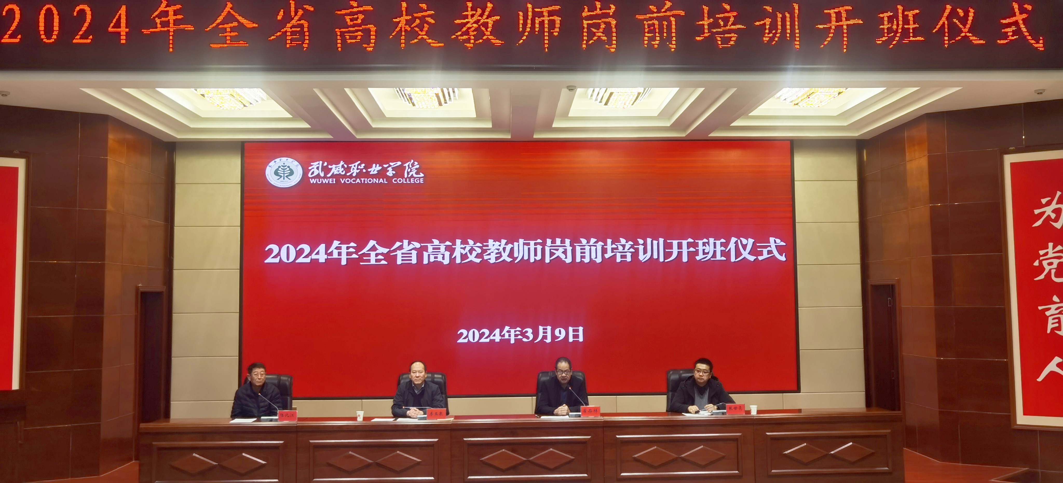 為引導(dǎo)廣大教師深刻領(lǐng)會教育家精神,牢記“為黨育人、為國育才”初心使命,樹立躬耕教壇信念,培養(yǎng)高素質(zhì)教師隊(duì)伍,3月9日上午,我校2024年上半年兼職教師崗前培訓(xùn)教學(xué)班開班儀式暨第一階段集中培訓(xùn)在學(xué)生發(fā)展中心菁英廳舉行。西北師范大學(xué)繼續(xù)教育學(xué)院副院長李玉泉、武威職業(yè)學(xué)院黨委副書記翟存祥、教務(wù)處負(fù)責(zé)人張世亮出席會議并講話,142名兼職教師參加開班儀式。儀式由甘肅省高等學(xué)校師資培訓(xùn)中心副主任陸北江主持。開班儀式上,張世亮介紹了本次兼職教師崗前培訓(xùn)基本情況,對培訓(xùn)工作作了部署安排。