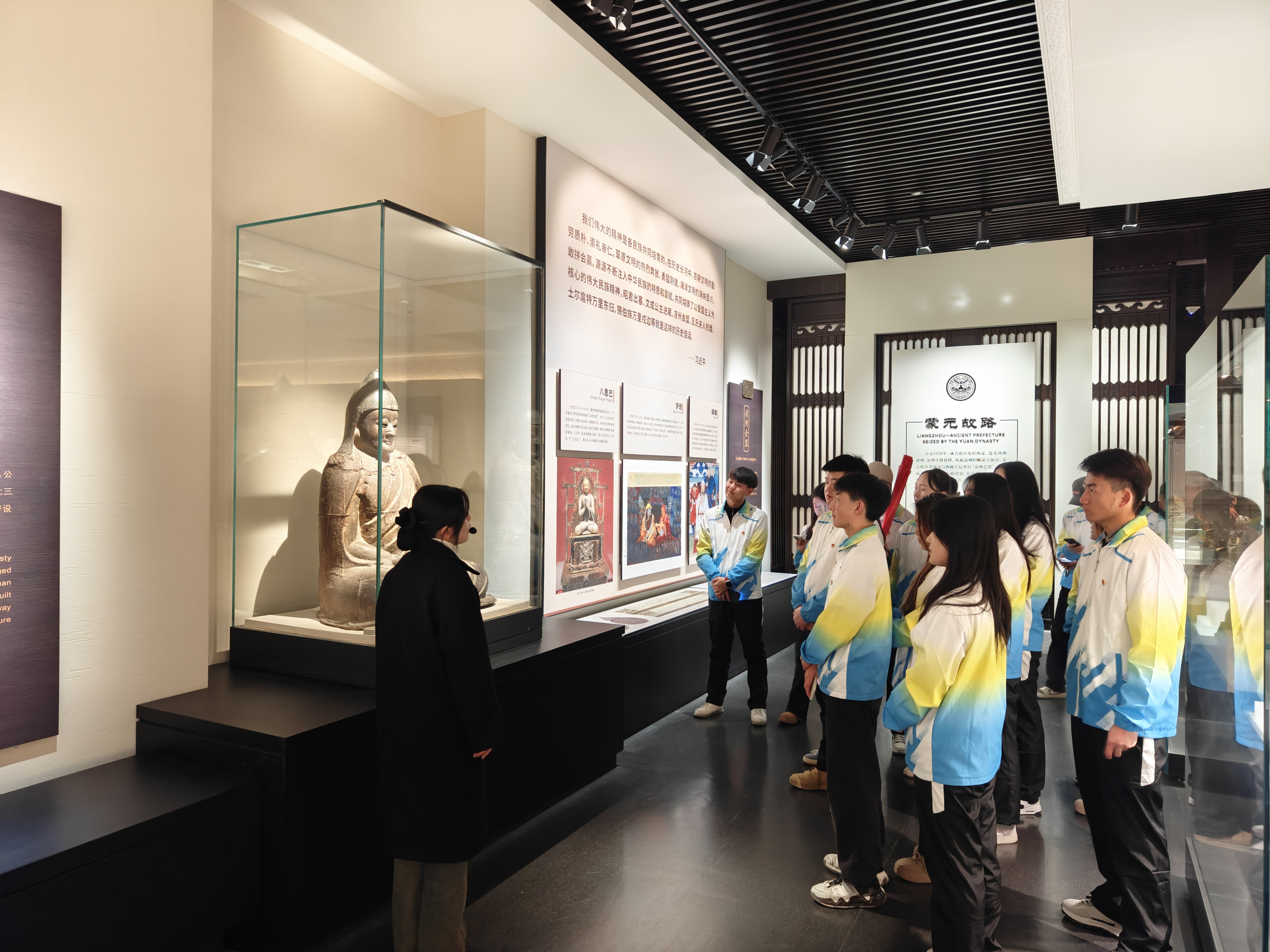 走進(jìn)武威市博物館,學(xué)子們被眼前精美絕倫的文物所震撼。跟隨講解員的步伐,學(xué)子們近距離感受綿延千年的武威歷史長(zhǎng)河。