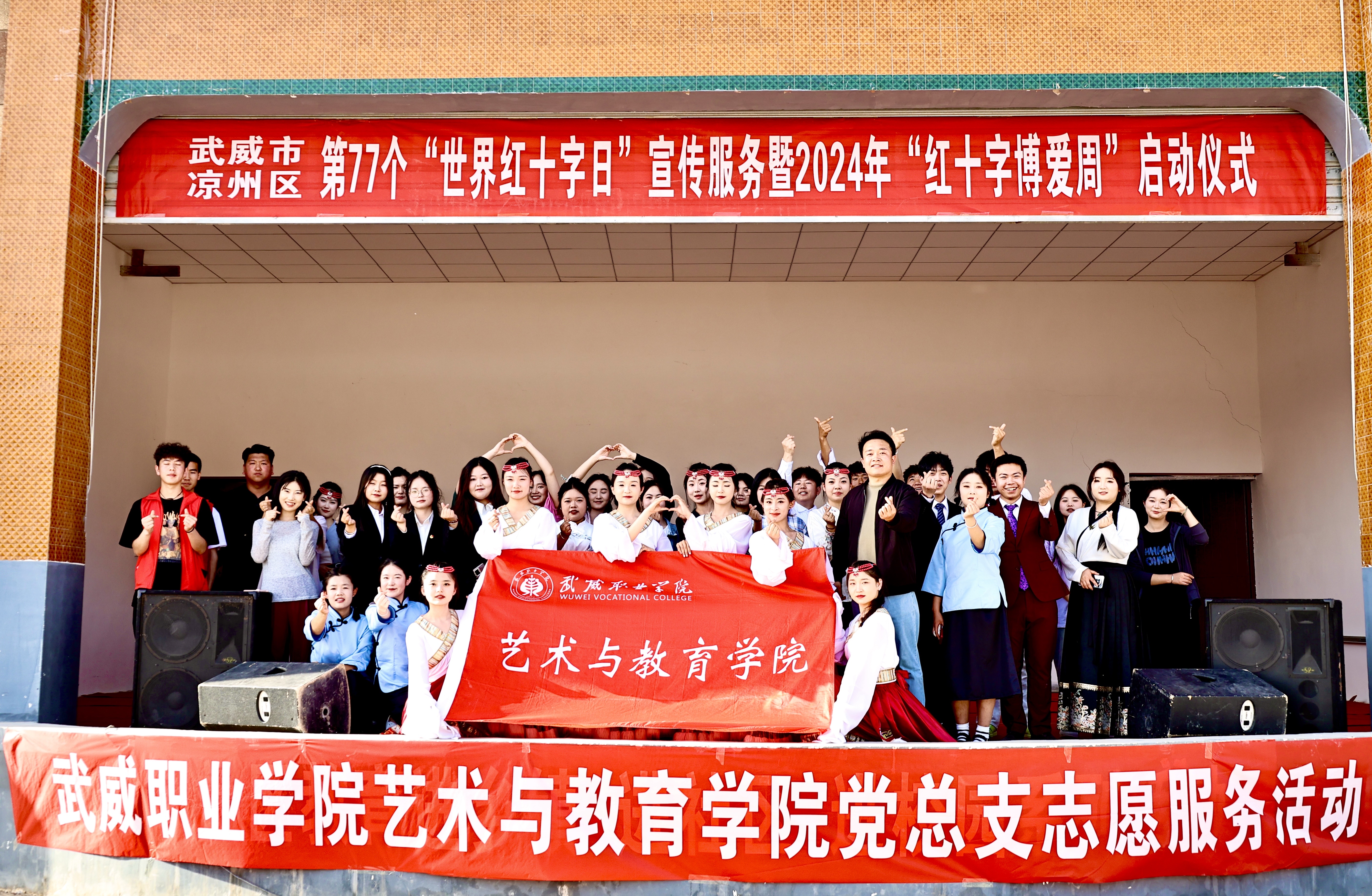 為紀(jì)念第77個“世界紅十字日”,進(jìn)一步弘揚“人道、博愛、奉獻(xiàn)”的紅十字精神,5月8日下午,武威職業(yè)學(xué)院藝術(shù)與教育學(xué)院50名志愿者赴涼州區(qū)清水鎮(zhèn)張清村開展“世界紅十字日”宣傳服務(wù)活動。
