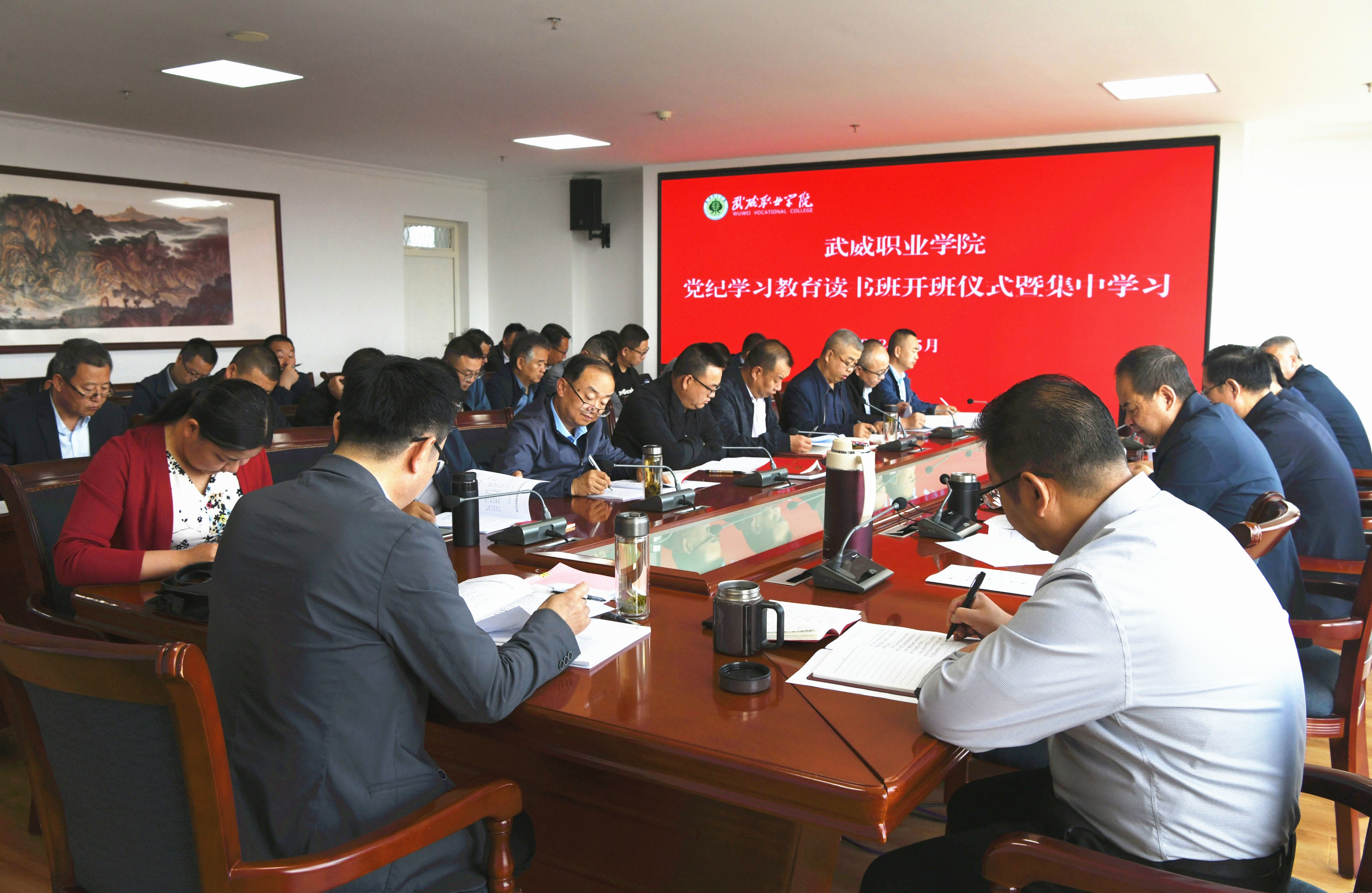 5月7日上午,武威職業(yè)學院黨紀學習教育讀書班開班并進行集體學習。學校校長、黨委副書記張開禮作開班動員講話。黨委班子成員、副處級黨員干部,各黨總支、直屬黨支部書記,各部門、二級學院主要負責人等37人參加學習。