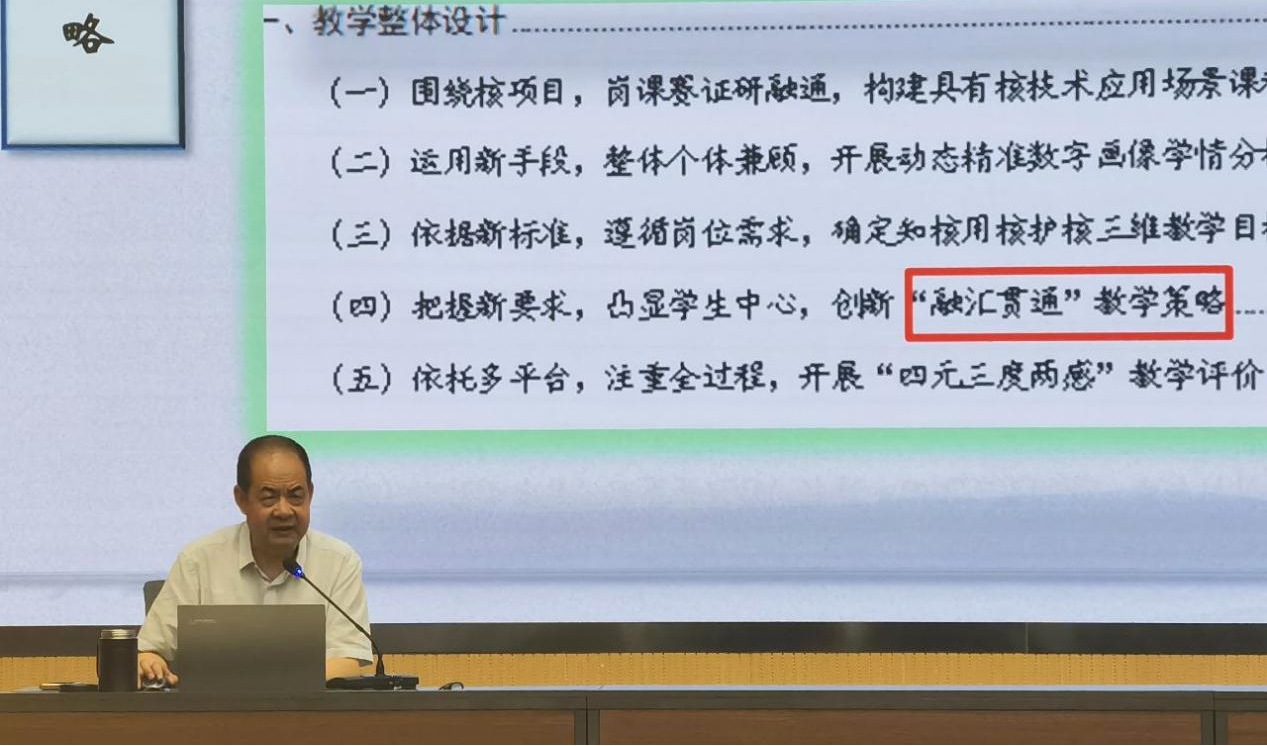 翟存祥以“獲獎作品是如何打磨的——以2023年核技術(shù)應(yīng)用作品為例”為題,對標國家教學(xué)能力大賽標準,總結(jié)參賽經(jīng)驗,對比賽中教學(xué)團隊的組建、參賽項目的選題、人才培養(yǎng)方案的完善、課程標準的制訂、教學(xué)實施方案和教案撰寫、課堂實錄視頻的拍攝以及賽場答辯的準備做了深入細致的分析。