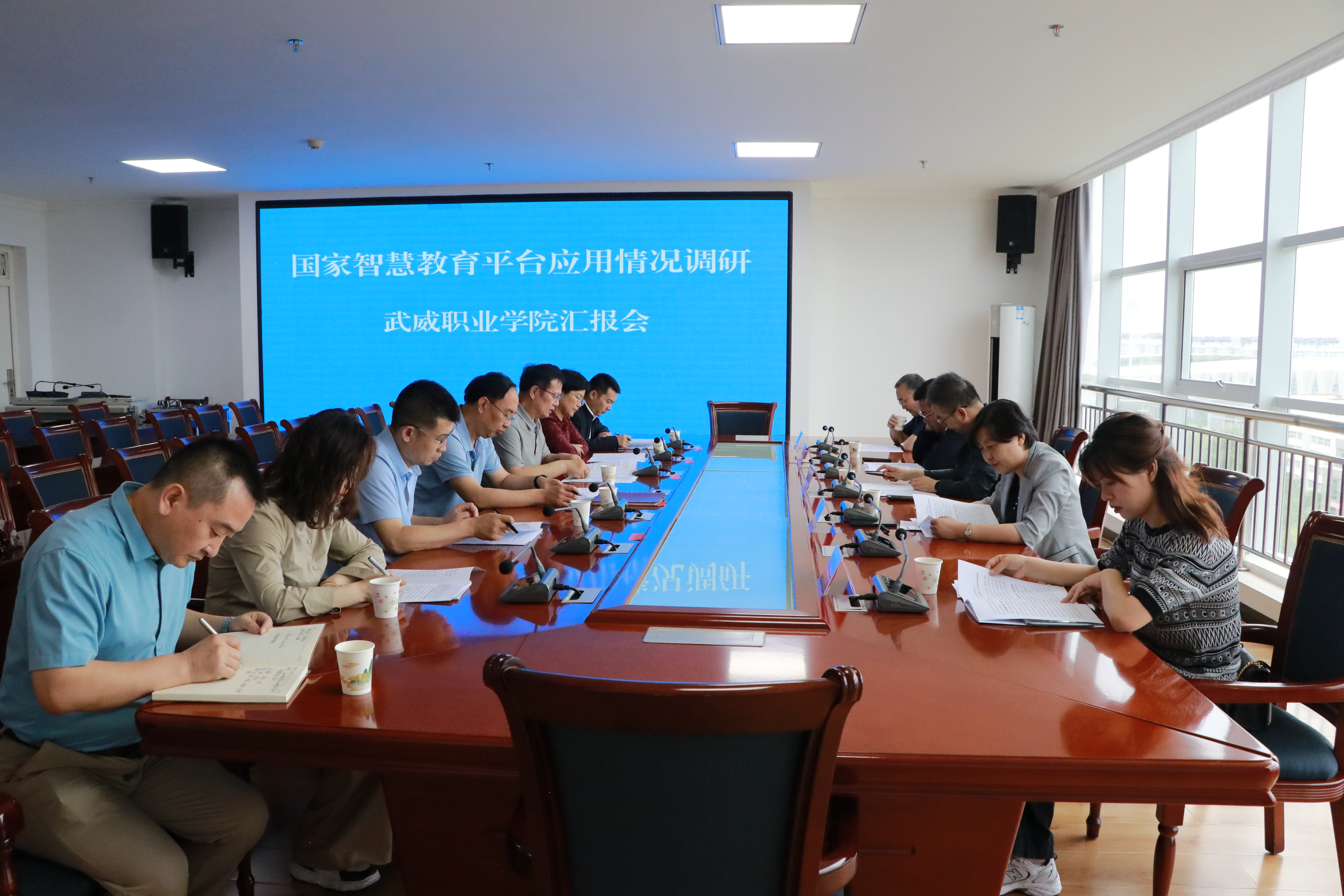 6月20日,甘肅省電化教育中心黨支部書(shū)記、主任梁翔一行來(lái)學(xué)校調(diào)研國(guó)家智慧教育平臺(tái)應(yīng)用情況。武威市教育局黨組書(shū)記、局長(zhǎng)王娟,學(xué)校黨委書(shū)記王宏,校長(zhǎng)、黨委副書(shū)記張開(kāi)禮,學(xué)校黨委委員、副校長(zhǎng)何毅陪同調(diào)研。教務(wù)處和網(wǎng)絡(luò)安全與信息技術(shù)中心負(fù)責(zé)人參會(huì)。