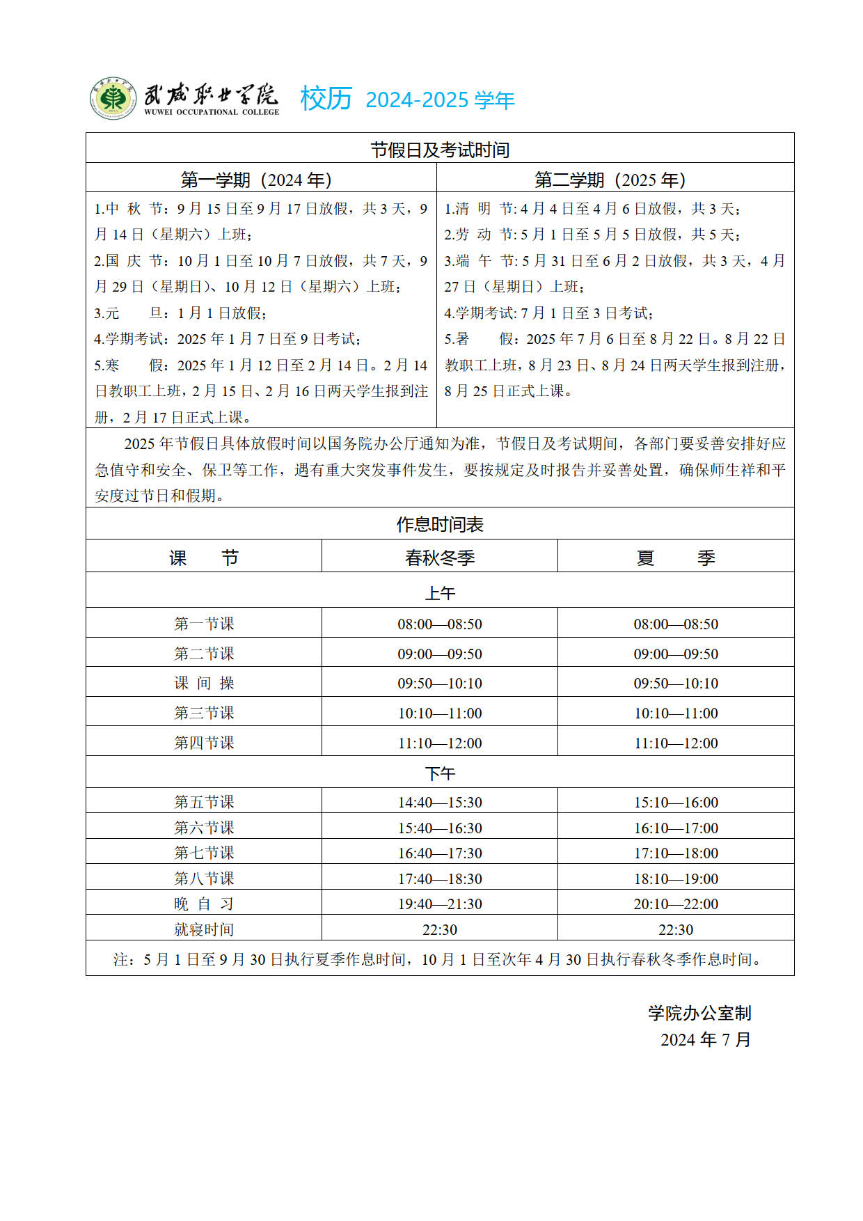 2024-2025學(xué)年校歷