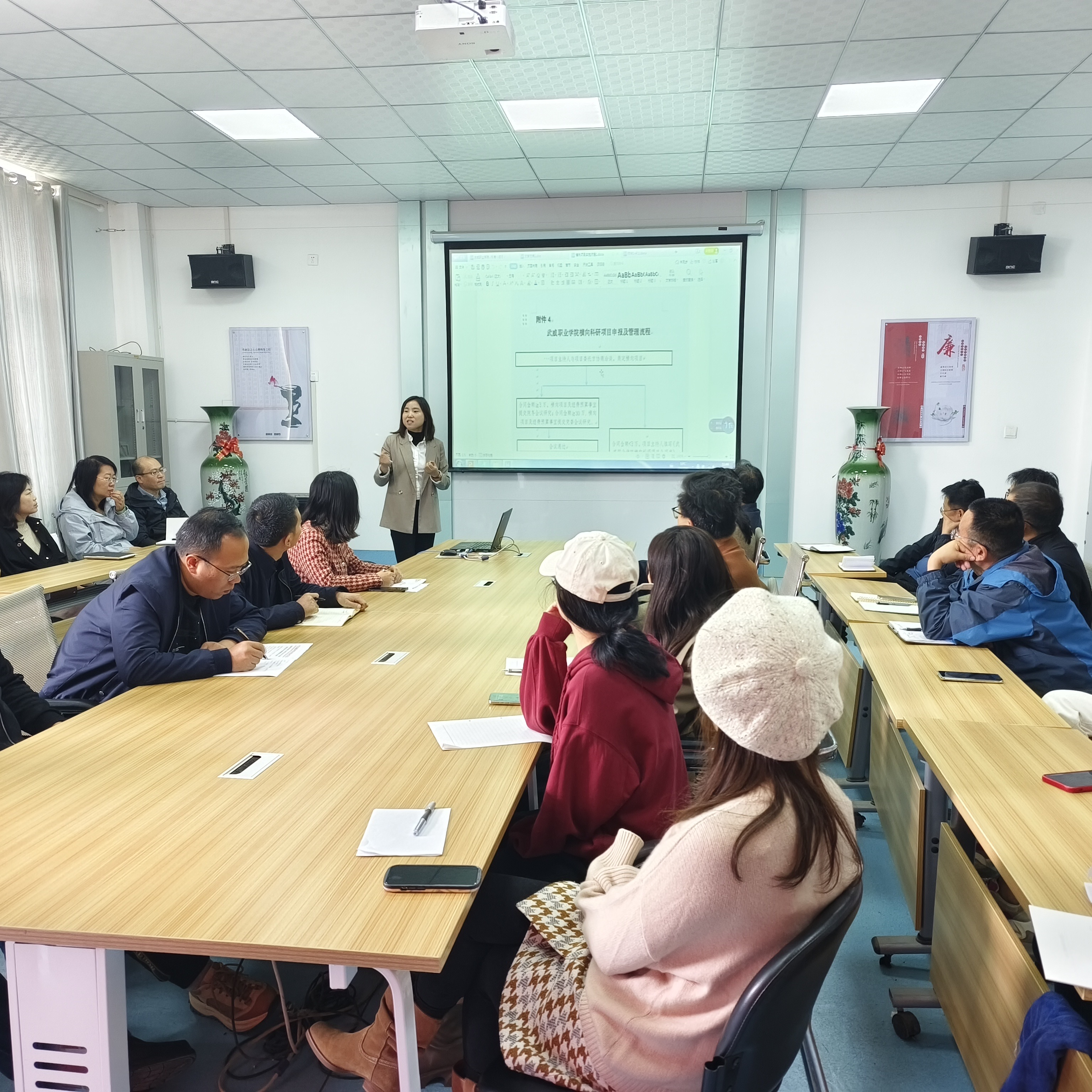 活動中,科技處工作人員宣講了橫向技術(shù)服務(wù)工作的實(shí)施流程,包括項(xiàng)目設(shè)置、合同簽訂、經(jīng)費(fèi)報(bào)銷、政策解讀等方面,尤其是對合同的填寫、任務(wù)書的填寫以及橫向技術(shù)服務(wù)流程的具體實(shí)施,進(jìn)行了詳細(xì)的指導(dǎo)與解答。參訓(xùn)教師針對相關(guān)培訓(xùn)內(nèi)容進(jìn)行熱烈互動及詳細(xì)詢問,科技處工作人員積極解答教師們的疑點(diǎn)難點(diǎn),為教師們提供實(shí)用的指導(dǎo)和建議。