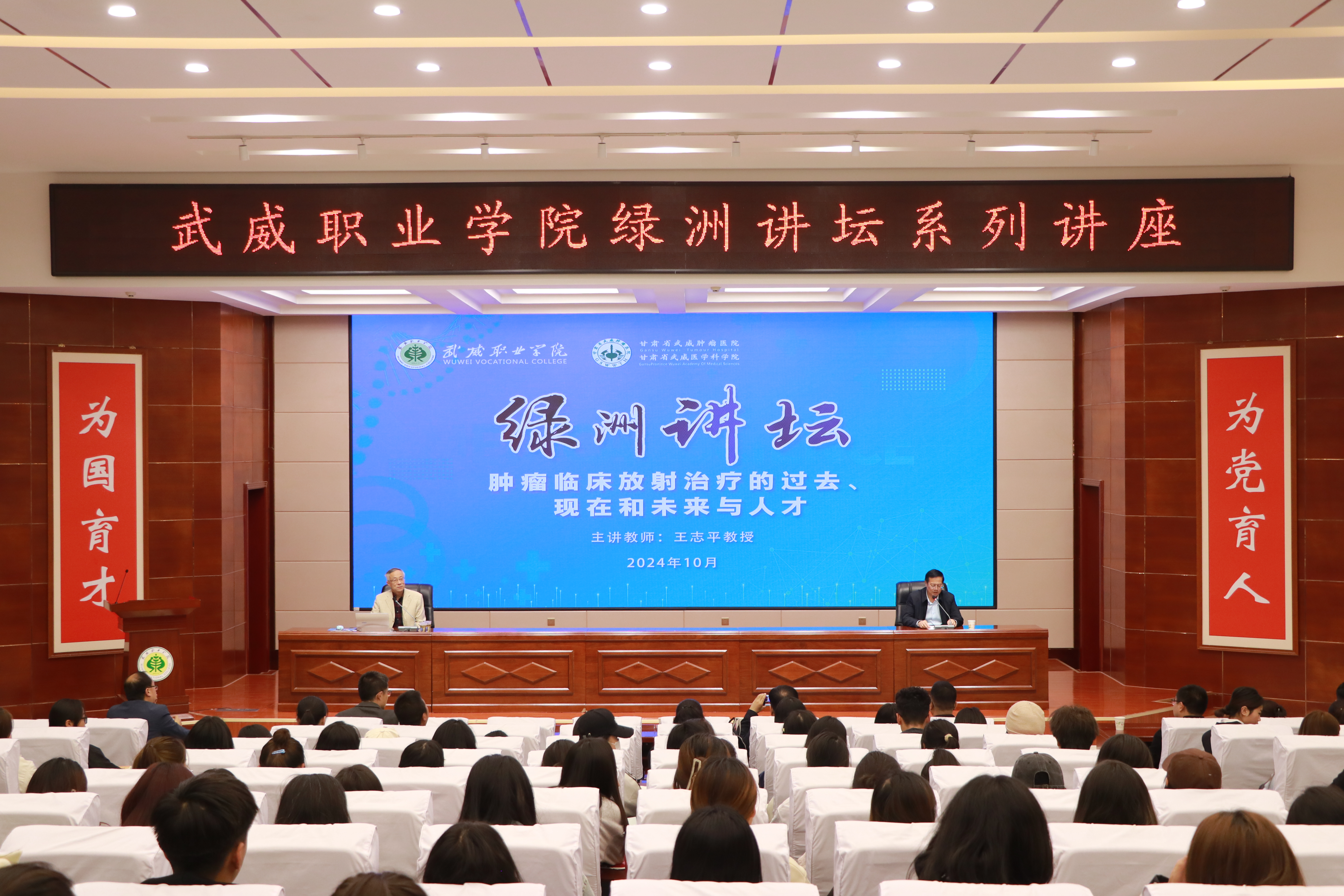 報(bào)告會(huì)由學(xué)校校長(zhǎng)、黨委副書記張開禮主持,特邀蘭州大學(xué)第二醫(yī)院王志平教授作了“腫瘤臨床放射治療的過(guò)去、現(xiàn)在和未來(lái)與人才”的主題講座,甘肅省武威醫(yī)學(xué)科學(xué)院腫瘤醫(yī)院醫(yī)護(hù)人員代表、蘭州大學(xué)實(shí)習(xí)生代表和學(xué)校師生代表共計(jì)220余人參加了報(bào)告會(huì)。