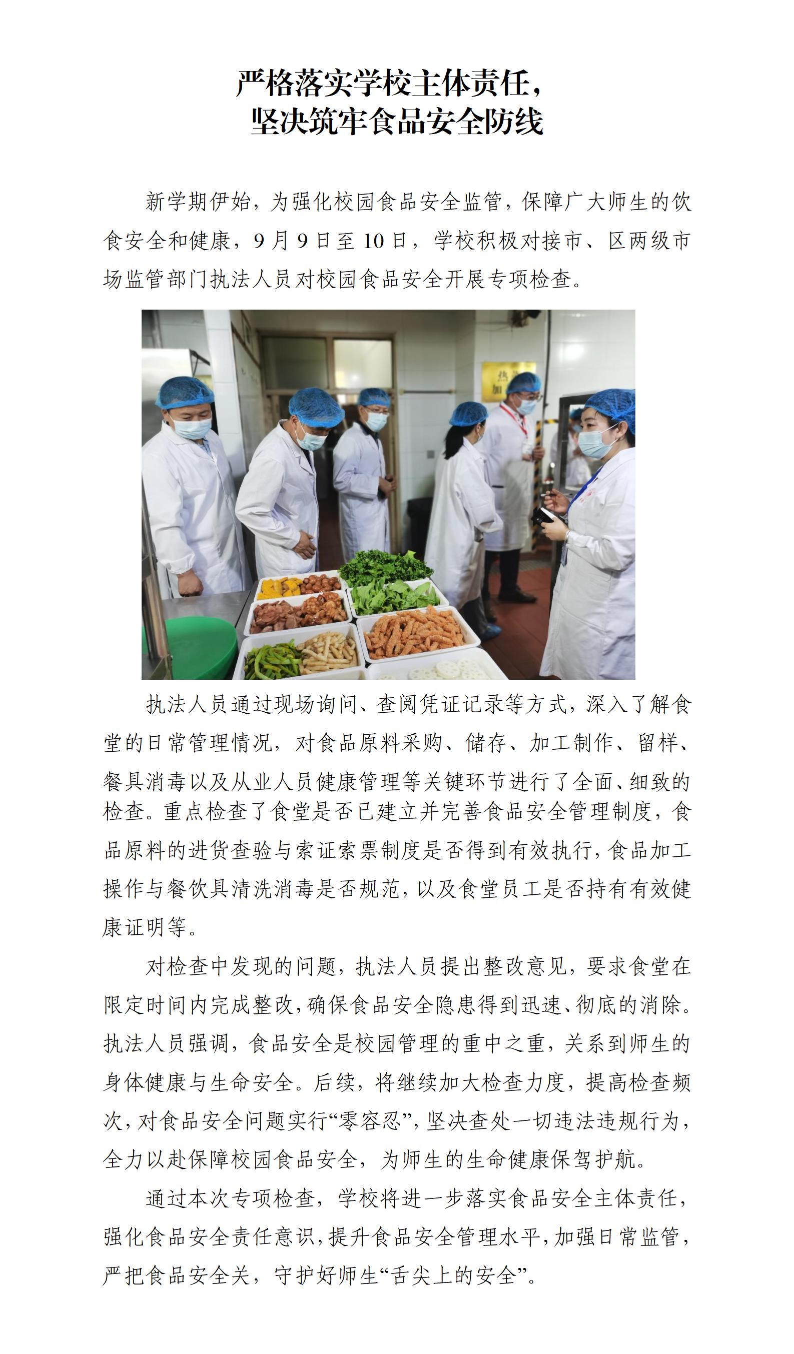 嚴格落實學校主體責任,堅決筑牢食品安全防線